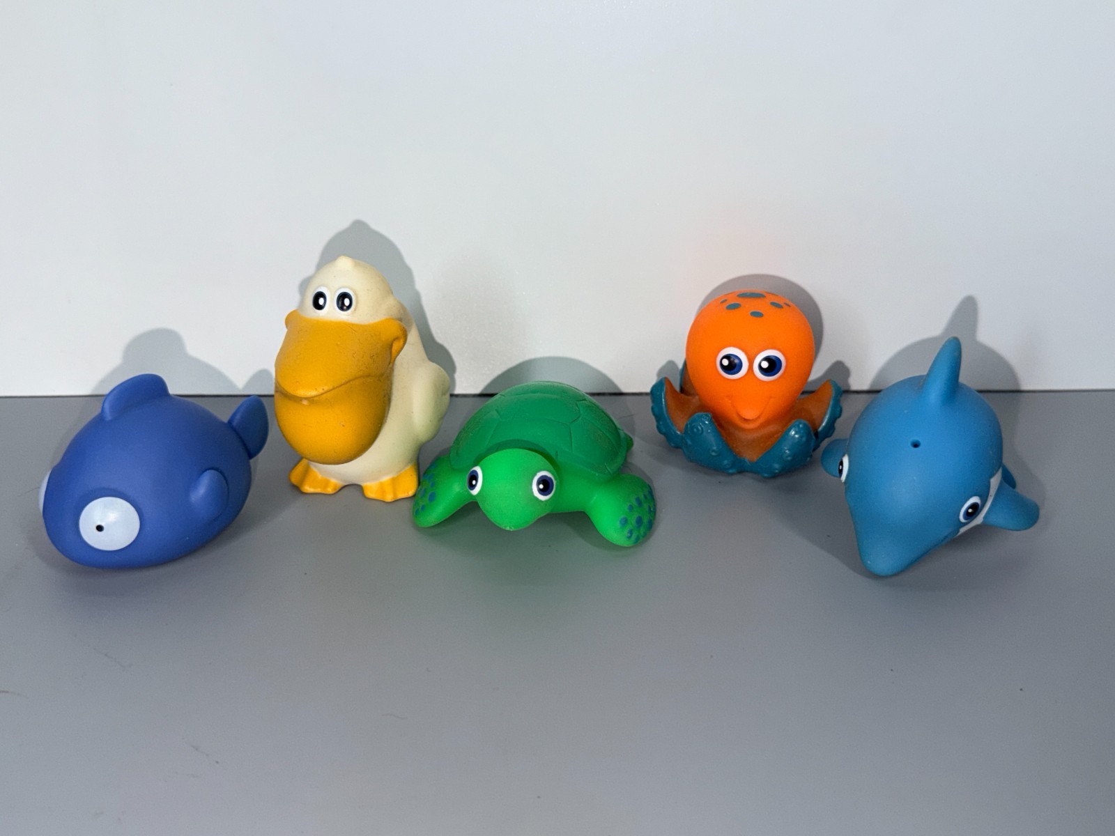как выглядит Bath Tub Time Children Float Toys Lot of 5 Dolphin Fish Octopus Turtle Pelican фото