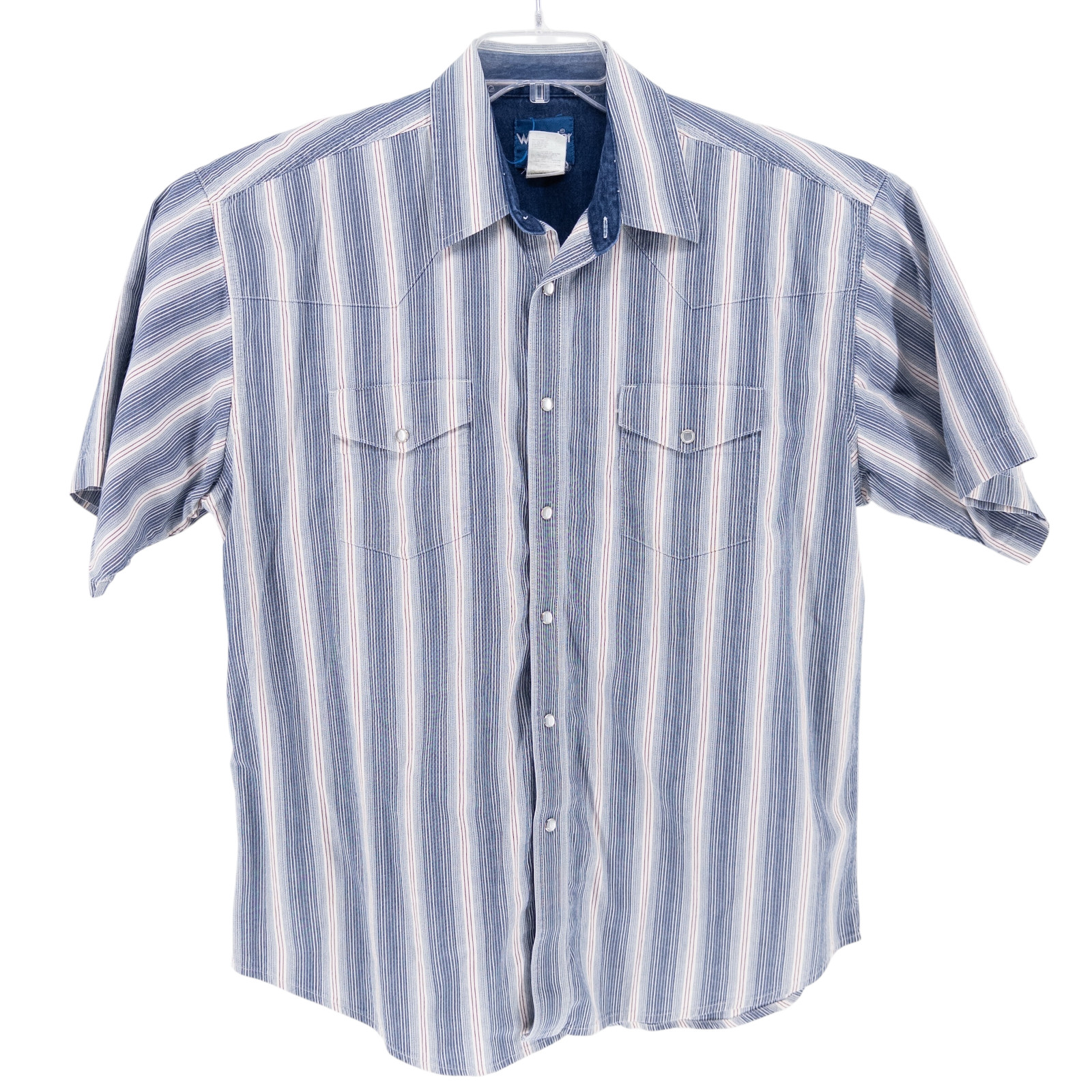 Vintage Wrangler Men's 2XL Western Shirt Pearl Snap Button Short Sleeve Striped