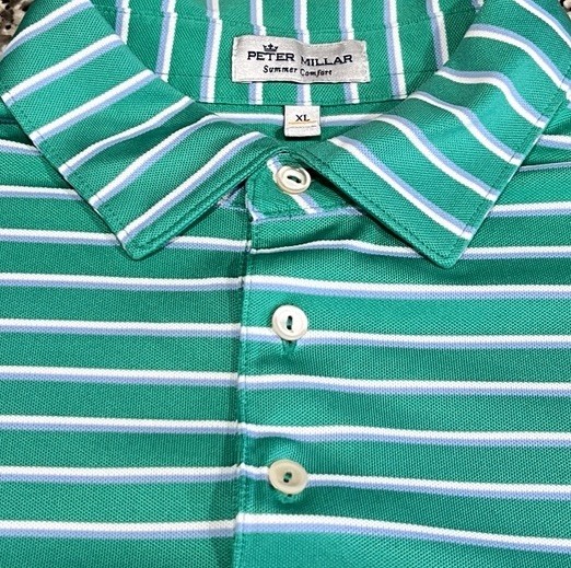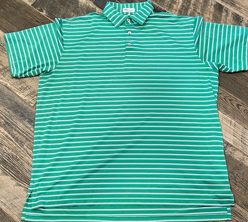 как выглядит Mens Peter Millar Summer Comfort Polo Golf Shirt Green Lilac Striped XL фото