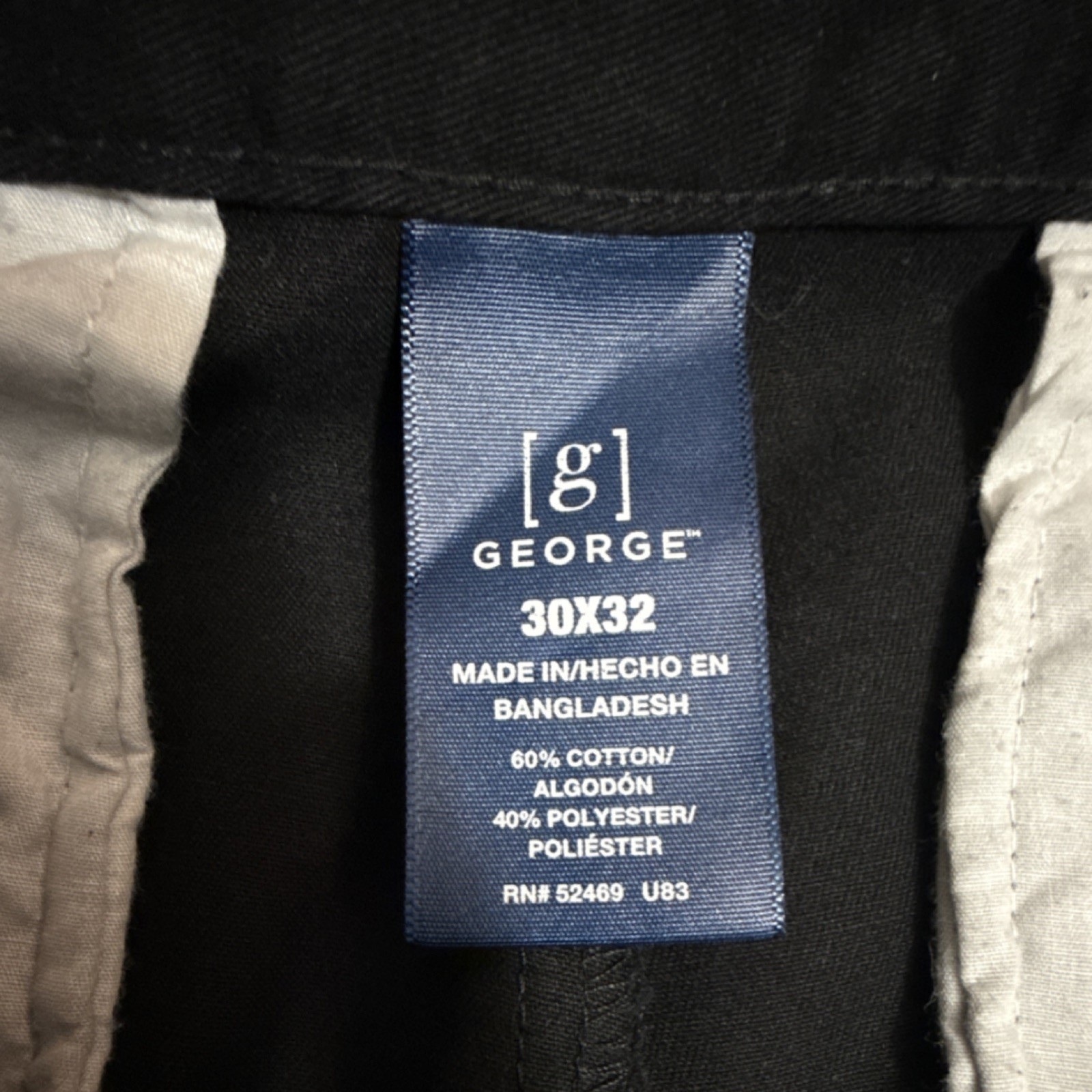 George Men's Black Casual Pants Straight Leg Flat Front Cotton Polyester