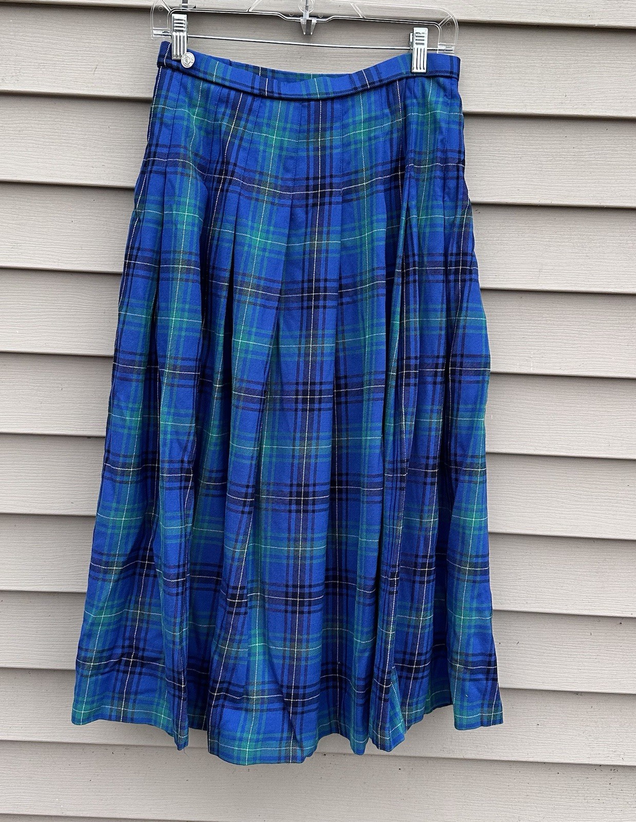Vtg Pendleton Wool Skirt Size Plaid Pleats Women s 10 Green Blue