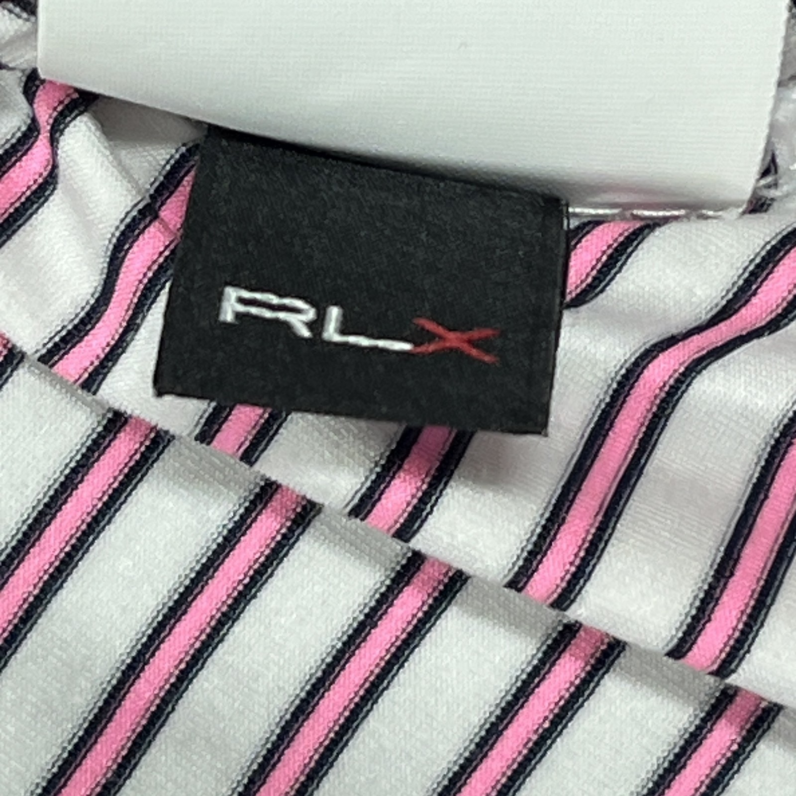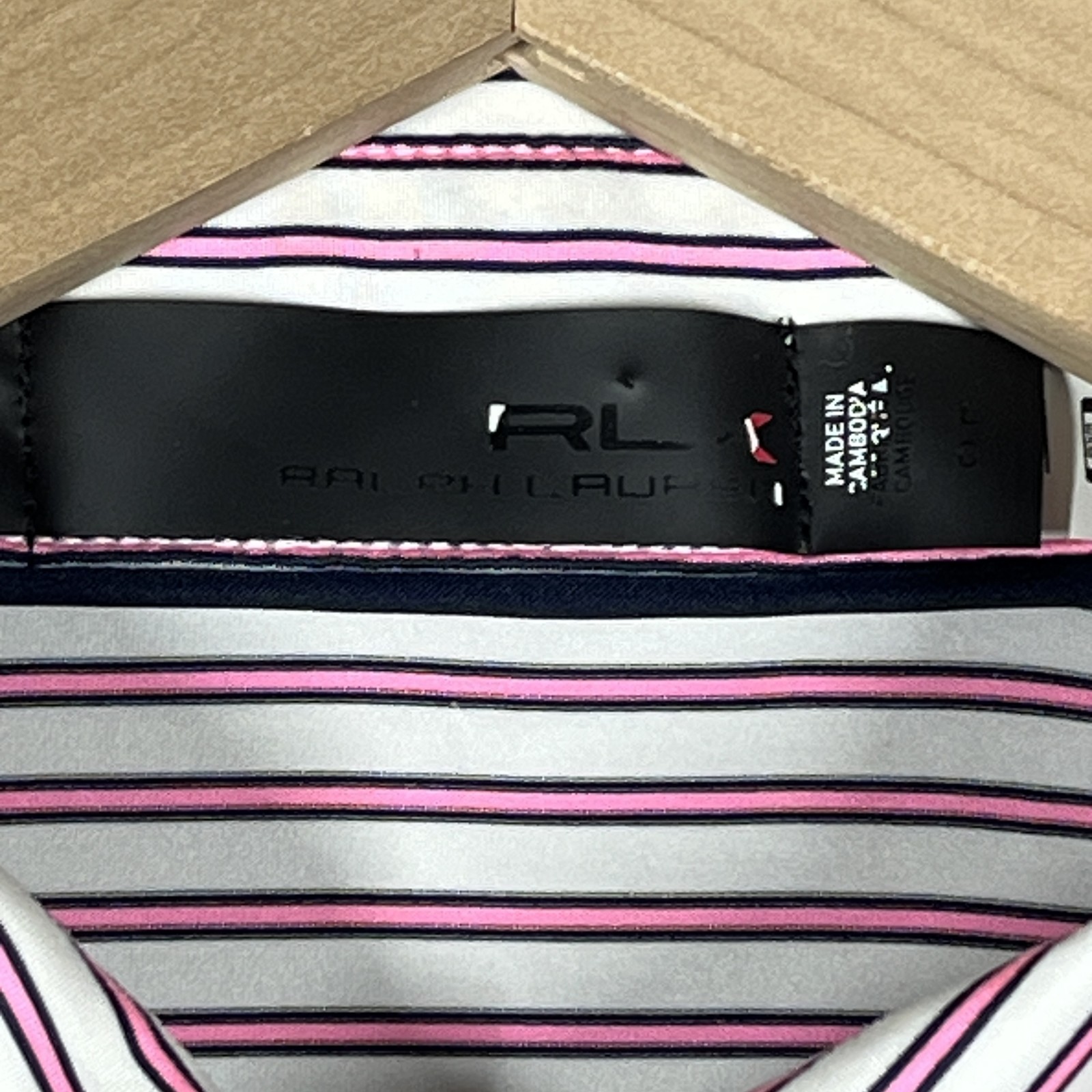 RLX Ralph Lauren Polo Shirt Mens L Pink White Striped Golf Performance Stretch