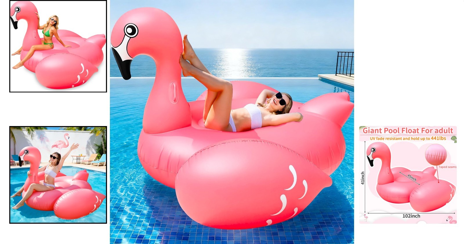 Inflatable 102'' Pink Flamingo Pool Float - Ideal for Relaxation Group Fun