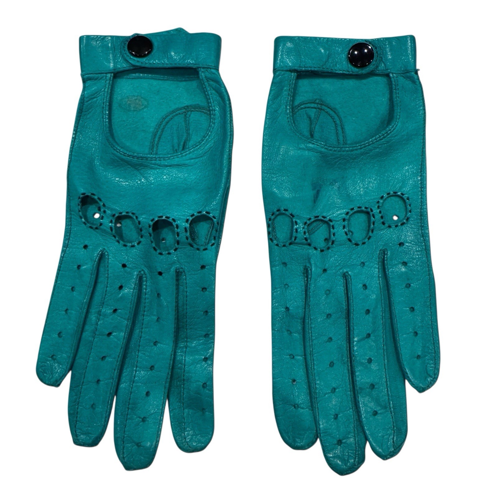 Vintage Leather Driving Gloves Womens 6.5 Small turquoise Lambskin Super Soft