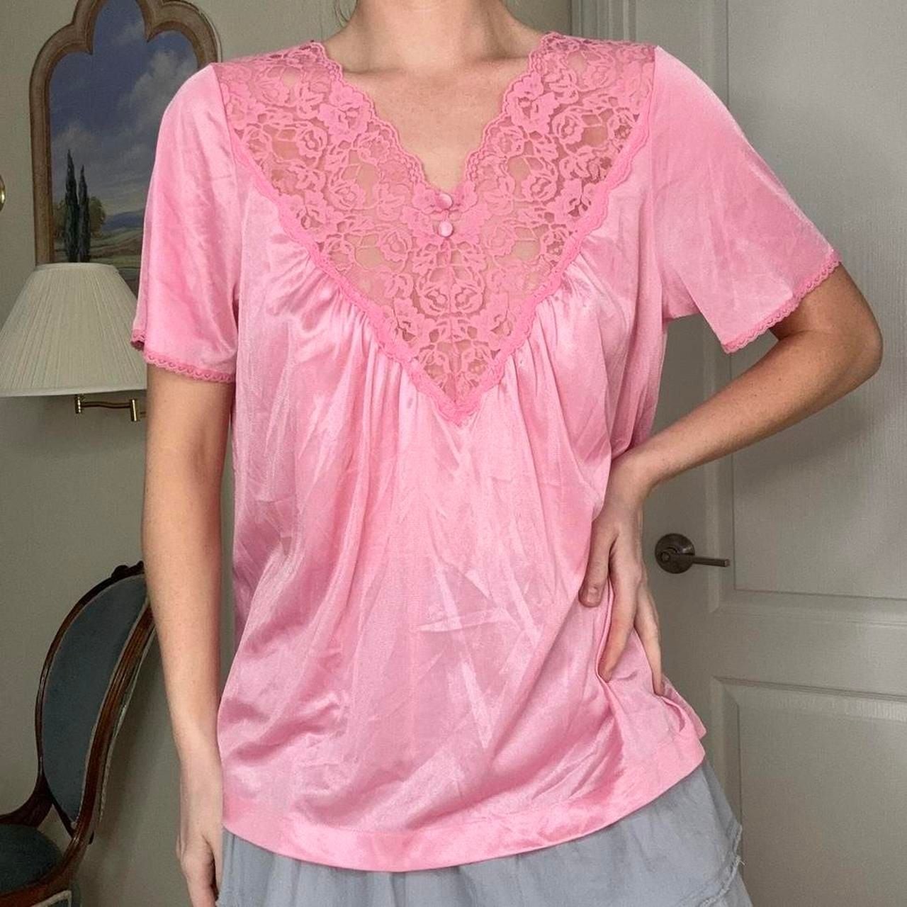 как выглядит Vintage 80s Vassarette Pink Satin Lace Babydoll Top - Coquette Fairycore фото