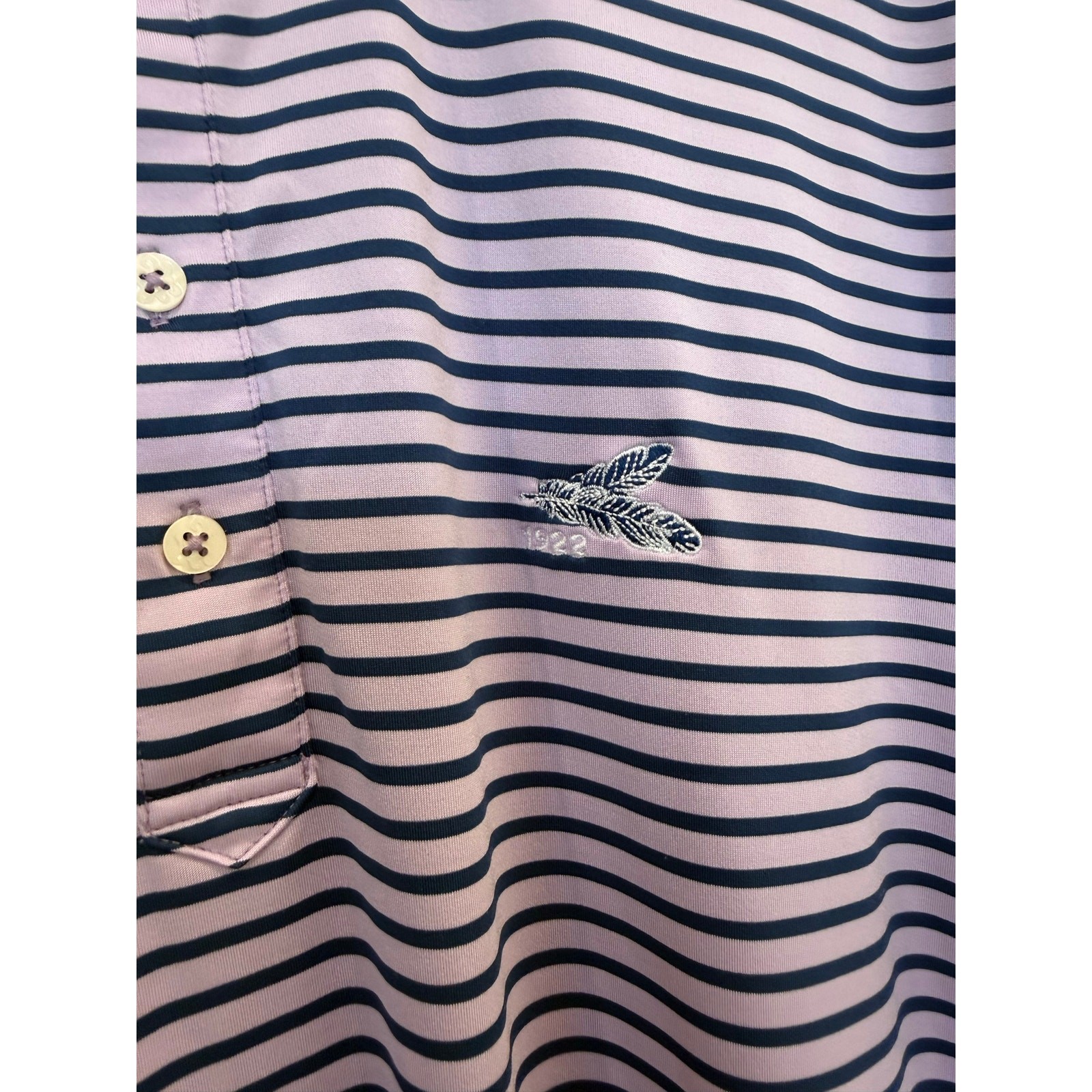 как выглядит Turtleson Golf Polo Shirt Men s Large Pink Blue Stripe Performance Short Sleeve фото
