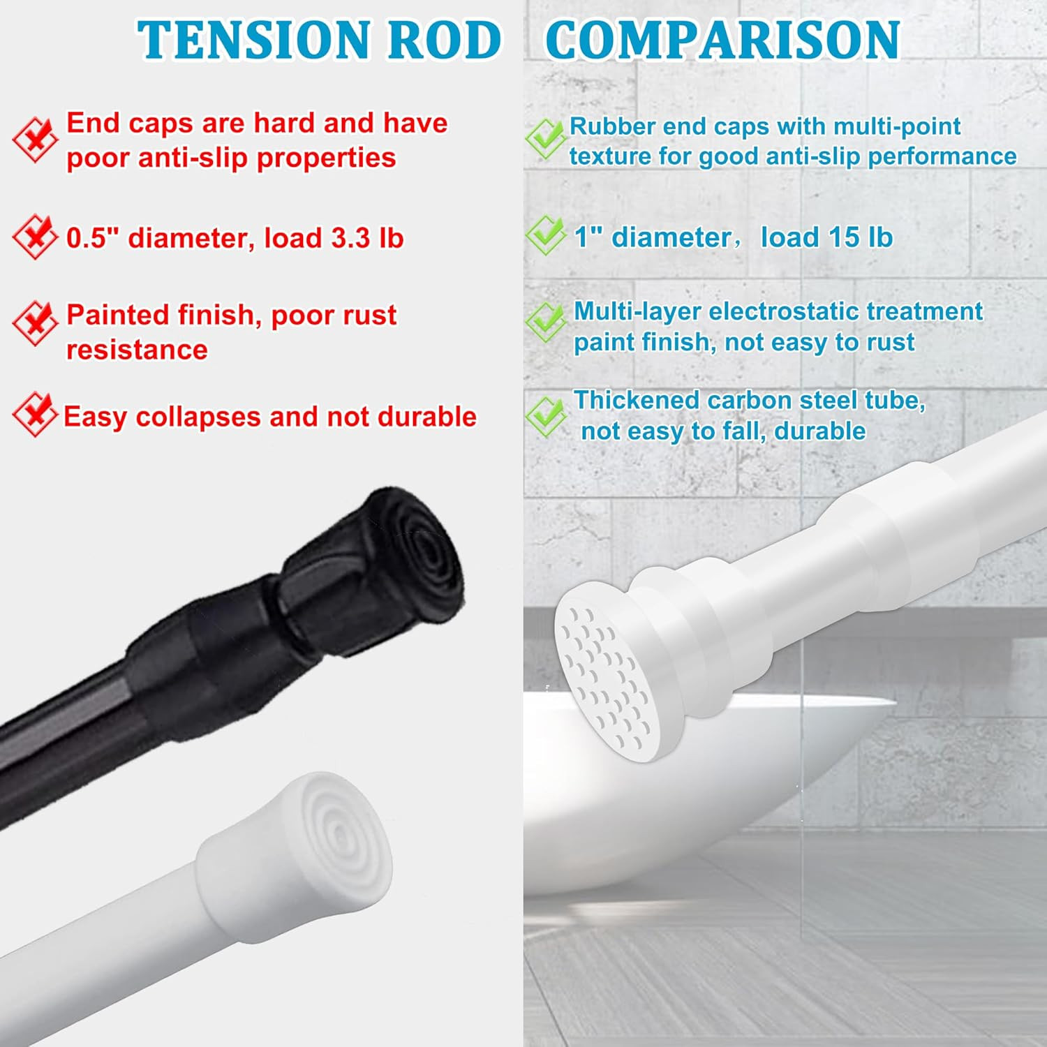 Small Tension Curtain Rods 16 to 28 Inches, Heavy Duty Short Shower Curtain Rod