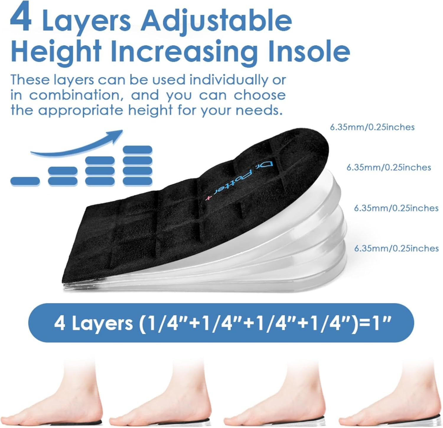 4 Layers Adjustable Height Increase Insoles, 1 Inch Heel Lift for Leg Length Dis