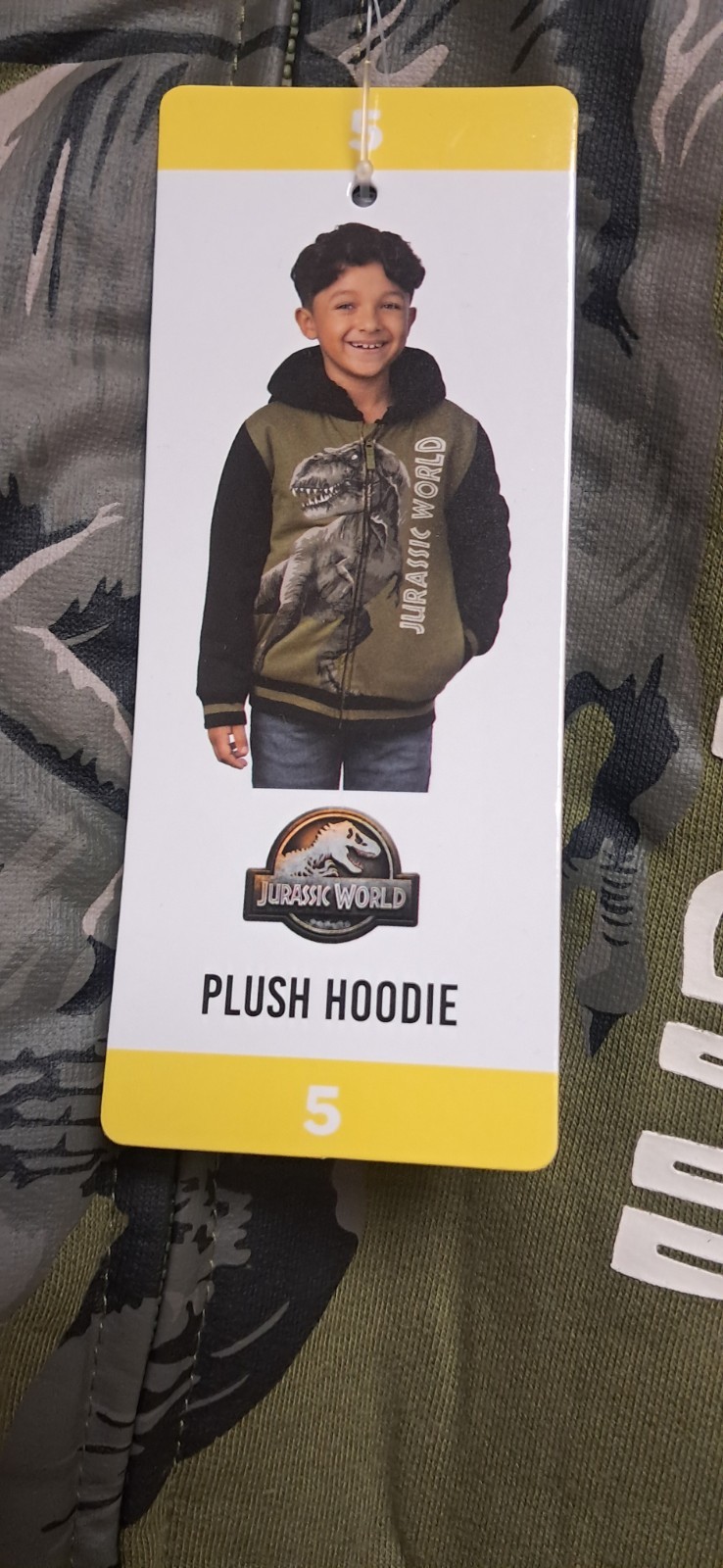 Boys Green Black Size 5 Jurassic World Plush Hoodie