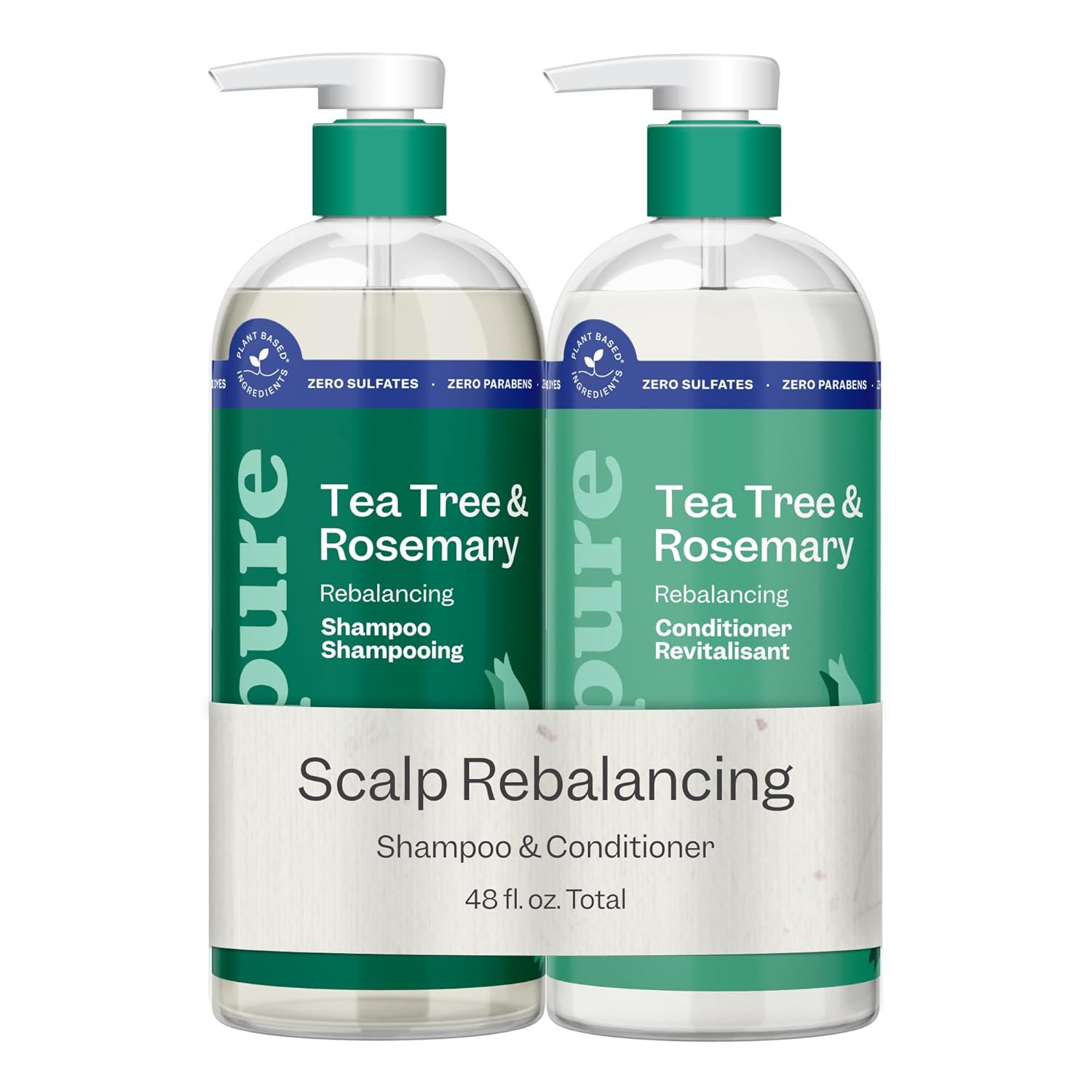Tea Tree Rosemary Shampoo and Conditioner Set, Plant Based - Refreshes Rebal