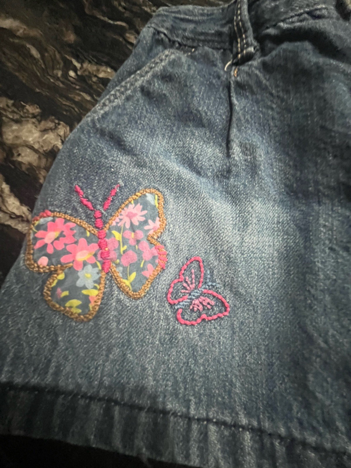 Vintage Y2K GirlsToddler Genuine Kids OSHKOSH BlueDenim JeanSkirt Butterflies 24