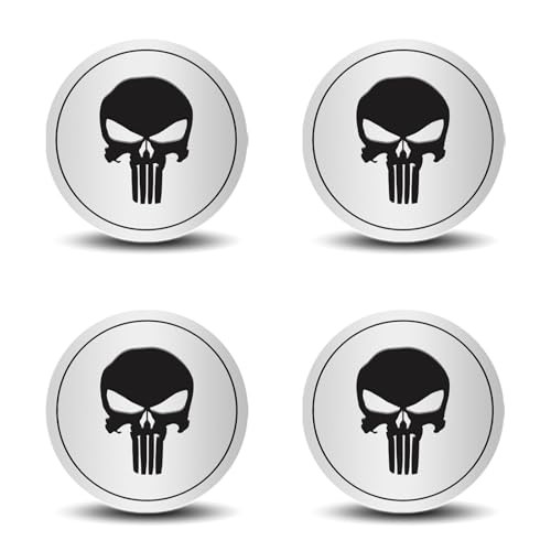 Wheel Center Caps Stickers 4PCS 2.2 Skull Metal Hub Center Cap Sticker Silver