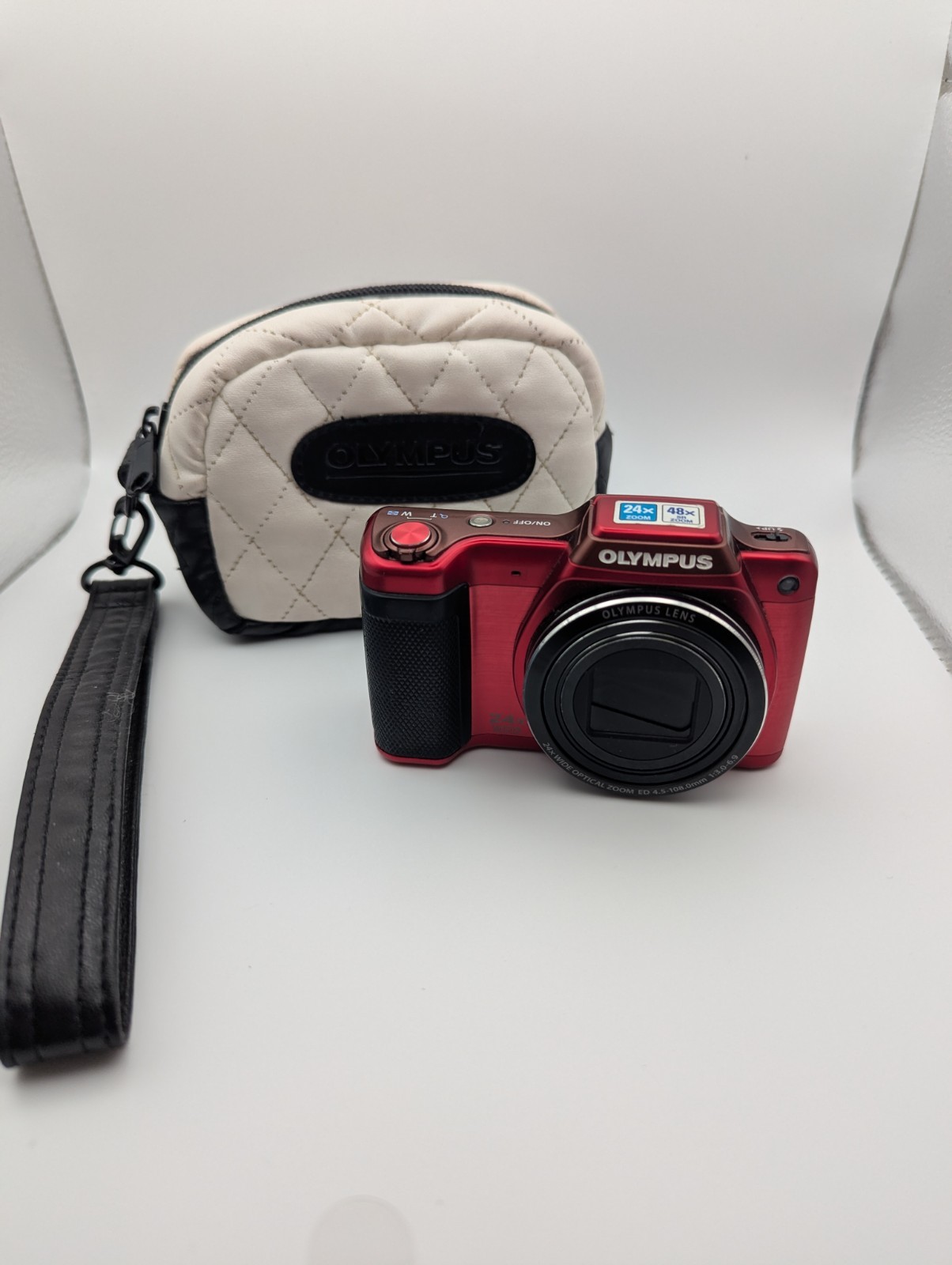 Olympus Stylus SZ15 Digital Camera and Case Tested Working Great Condition Red
