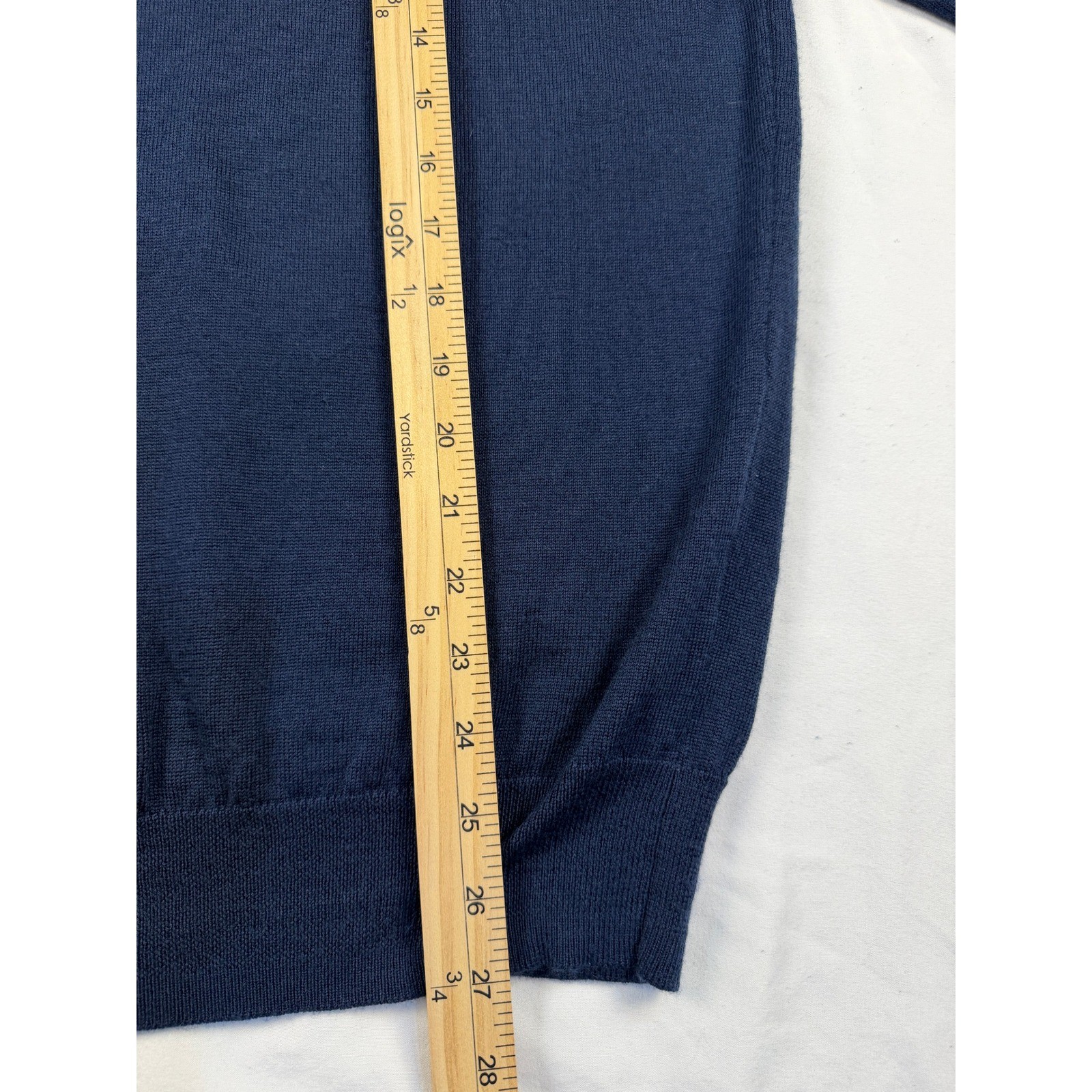 как выглядит JO S A BANK Travelers Collection V Neck Sweater Navy Blue Merino Wool Mens L фото