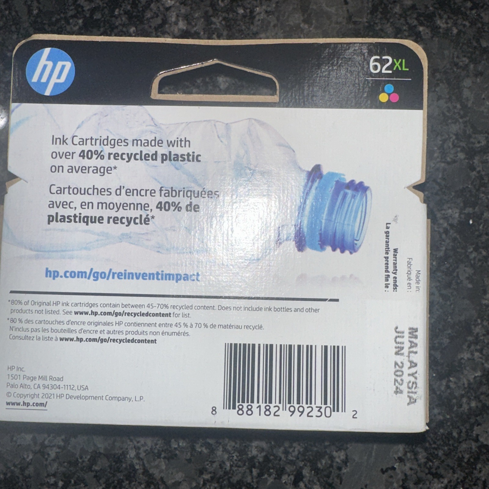 NEW GENUINE - HP 62XL TRI-COLOR INK CARTRIDGE - C2P07AN - Sealed Box 2024