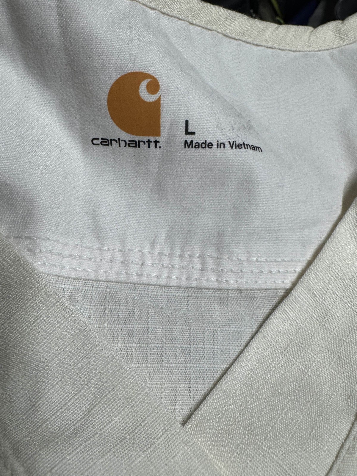 Carhartt Mens L Ripstop V-Neck Scrub Top White Cotton Blend
