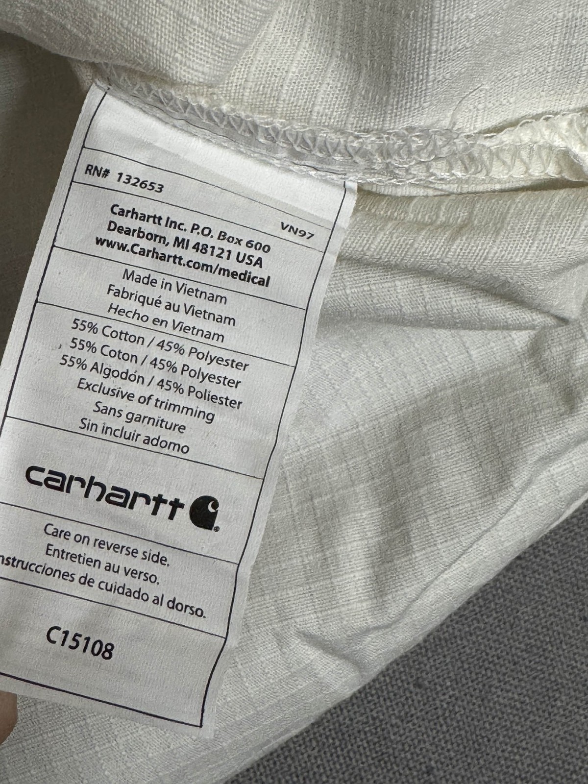 как выглядит Carhartt Mens L Ripstop V-Neck Scrub Top White Cotton Blend фото