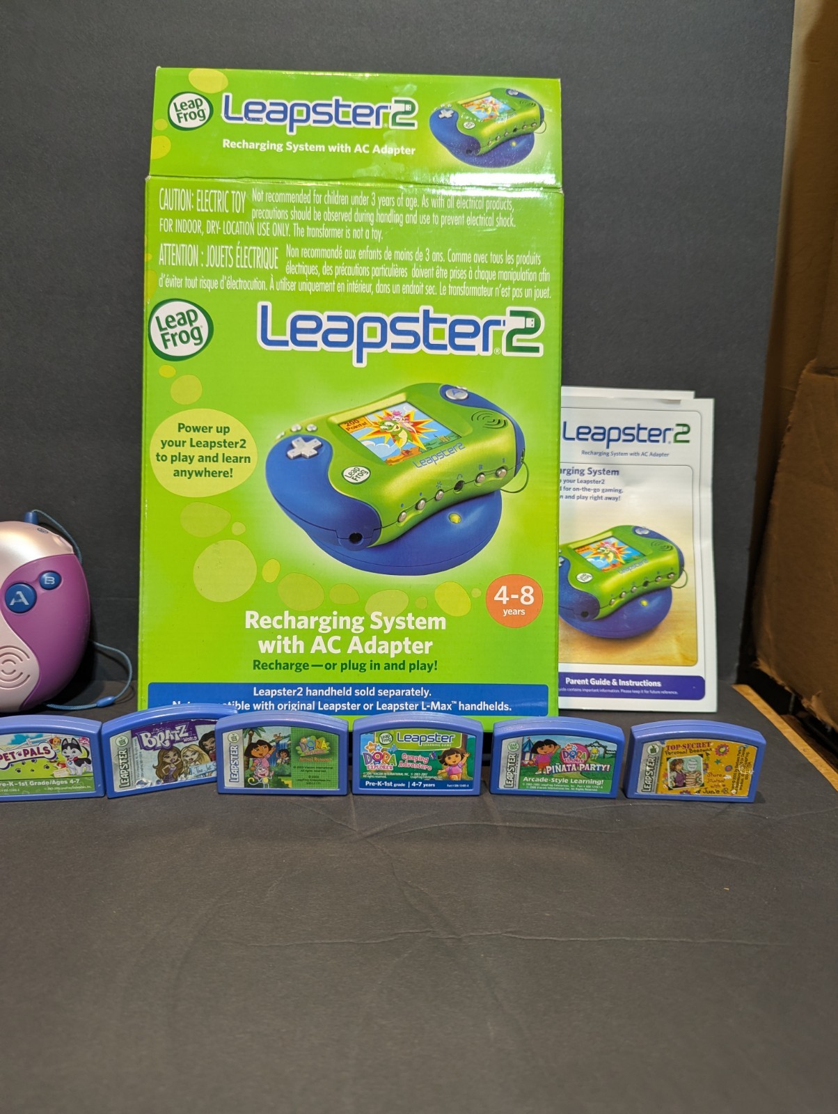 Leapster 2 Purple Learning Game System w/ 7 Games TESTED Recharging Station
