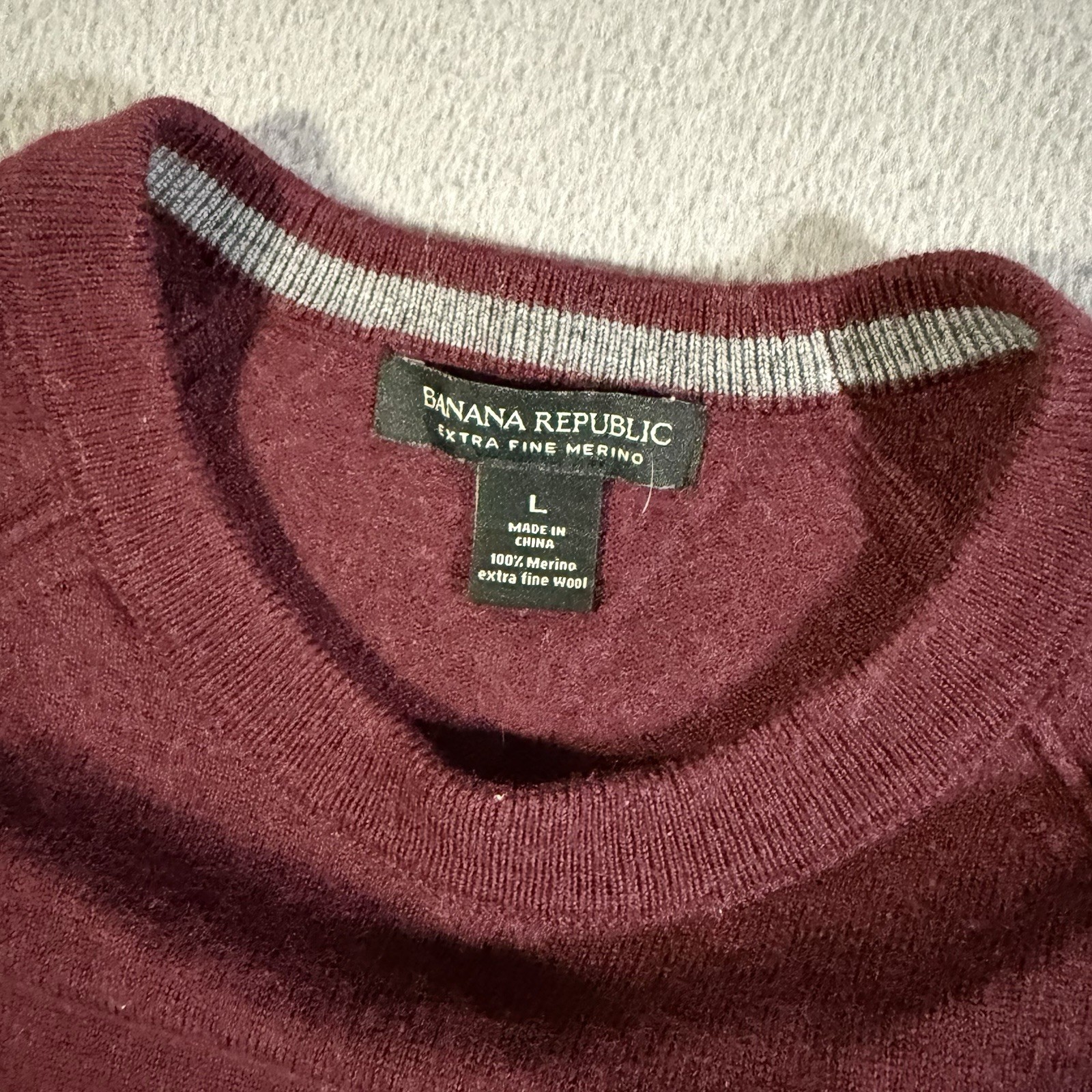 как выглядит BANANA REPUBLIC Mens Extra Fine Merino Wool Burgundy/Red Sweater V Neck SIZE LG фото