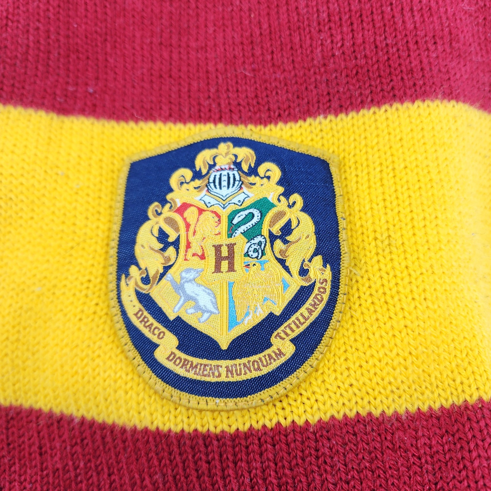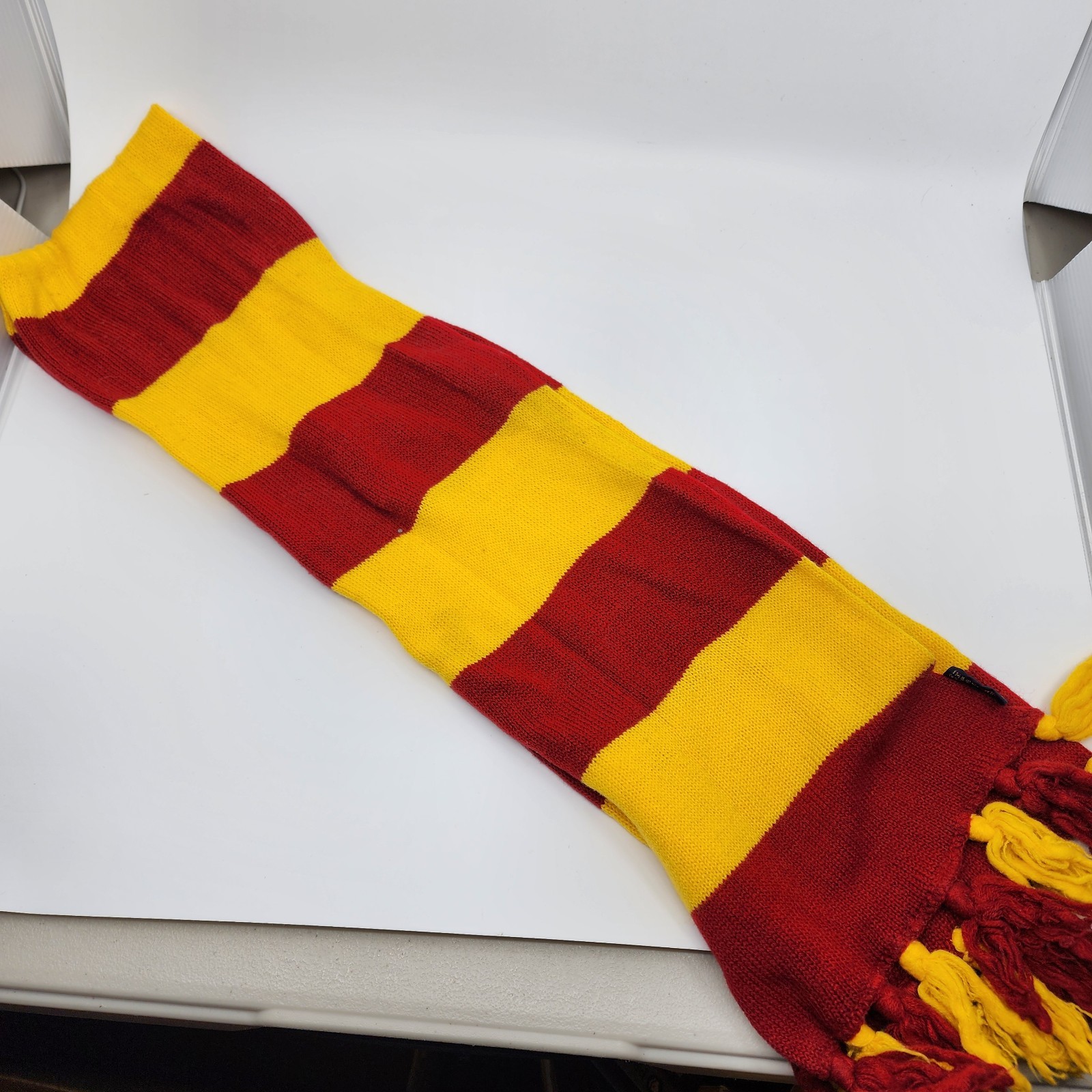 HARRY POTTER Hogwarts Fringe Tassels Maroon/Gold Gryffindor Knit Scarf 54 x 8