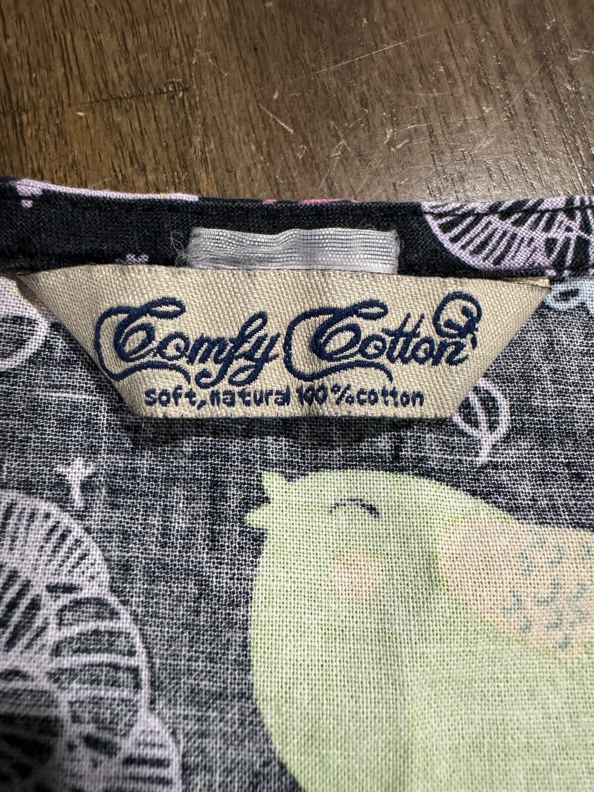как выглядит Comfy Cotton Scrub Top Black w/Colorful Birds Measures Size Small Tag Removed фото