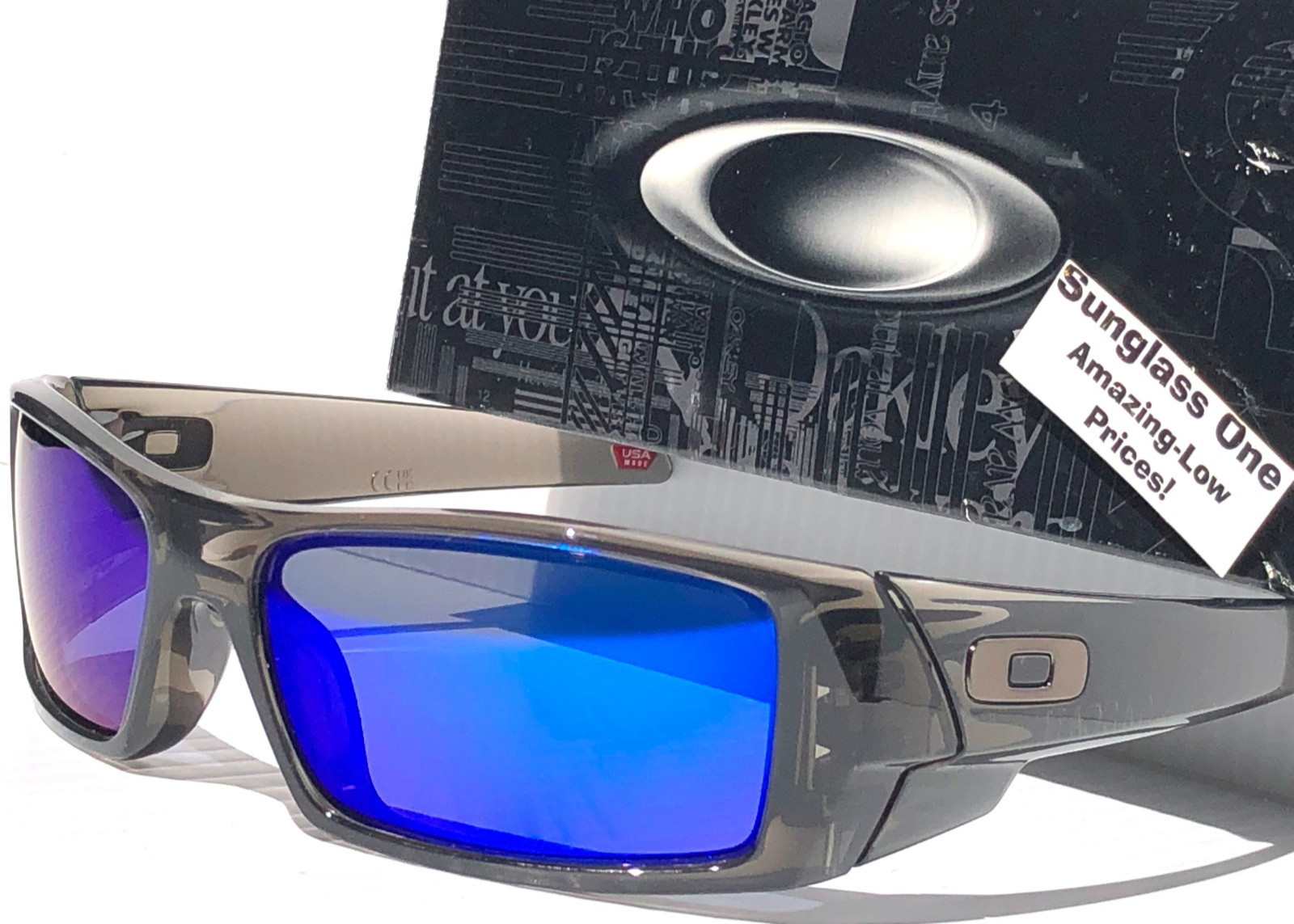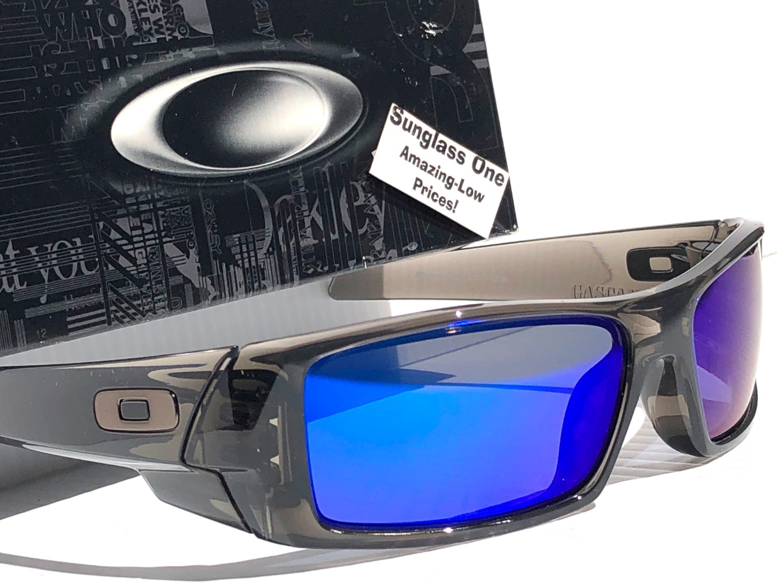 NEW Oakley GASCAN Grey Smoke POLARIZED Galaxy Blue Mirror Sunglass 9014-E2