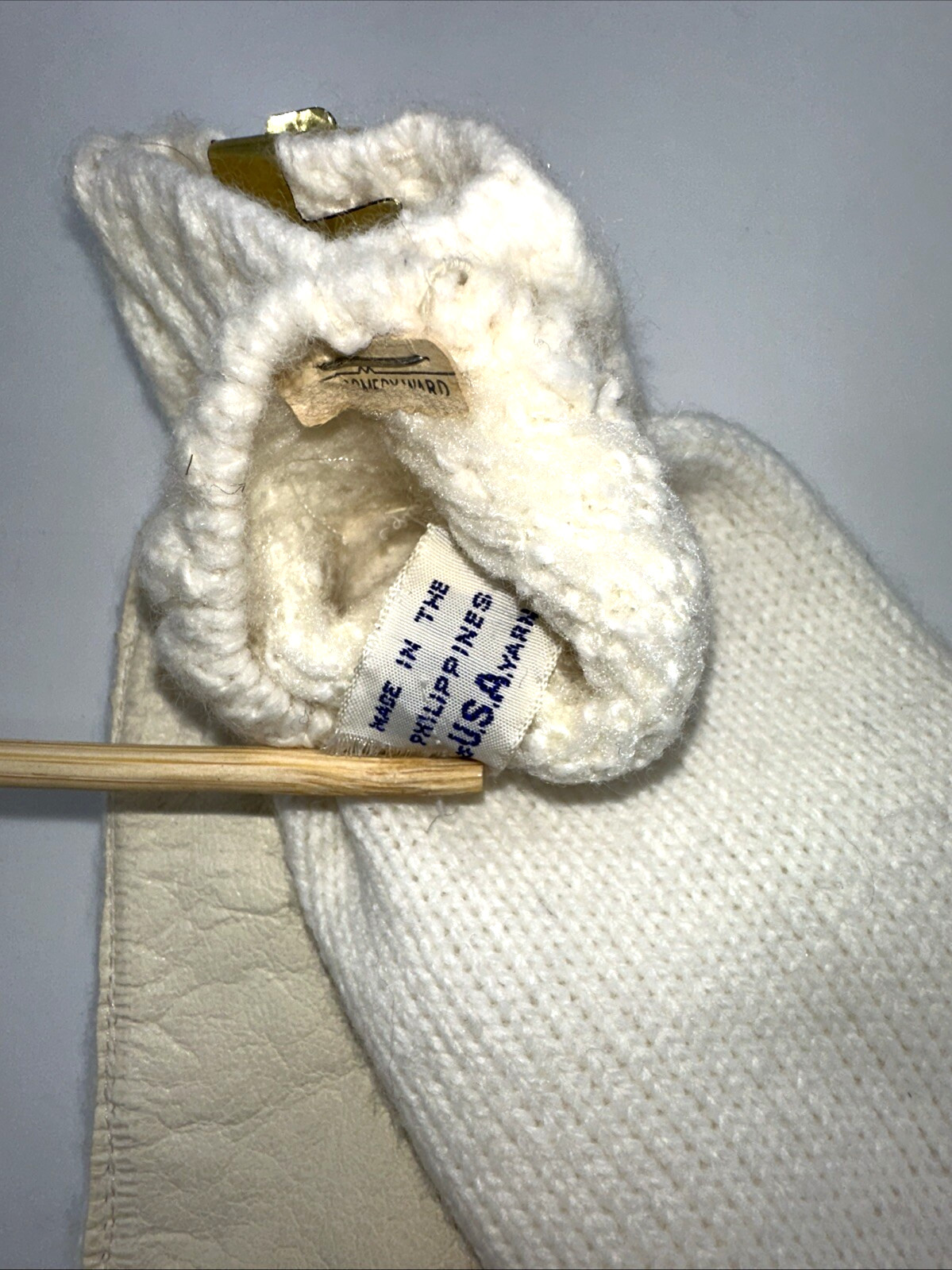 Vtg Ladies Winter Gloves Knit Acrylic Cream Ivory Leather Palms Sz Lrg but Small