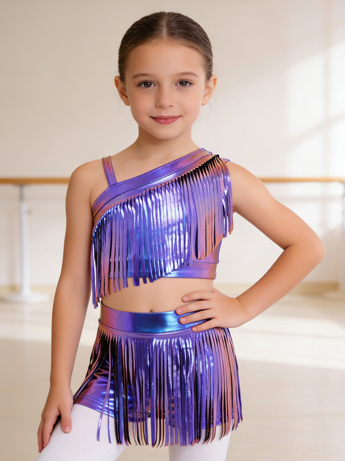 Girls Costume Ballet Outfits Leotard Dancewear Metallic Ballroom Kid Cha Cha