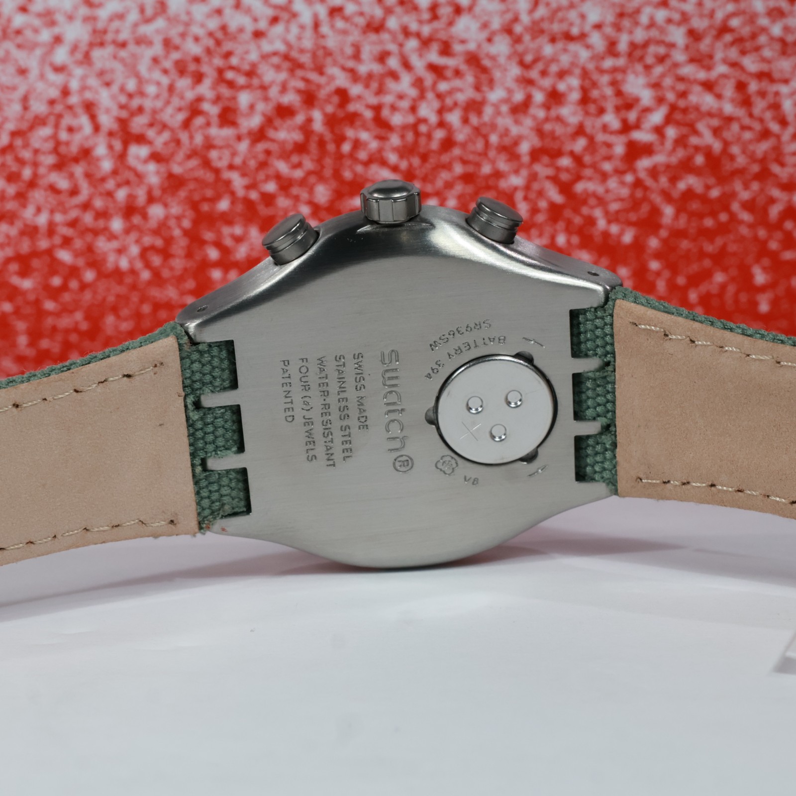 Особенности: Chronograph, Luminous Hands, Swiss Made, MATTE BEZEL, screw down battery, STAINLESS STEEL BEZEL, STAINLESS CASE MATTE FINISH, 3 Bar water resistant, 4 jewels, khaki gree n(looks gray to me) textile band