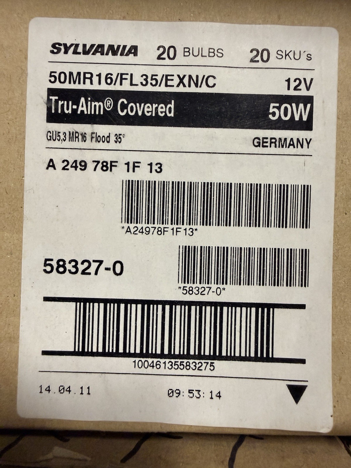 Lot Of 20 - SYLVANIA 58327 Tru-Aim Covered Halogen 50MR16/FL35/EXN/C 12V GU5.3.