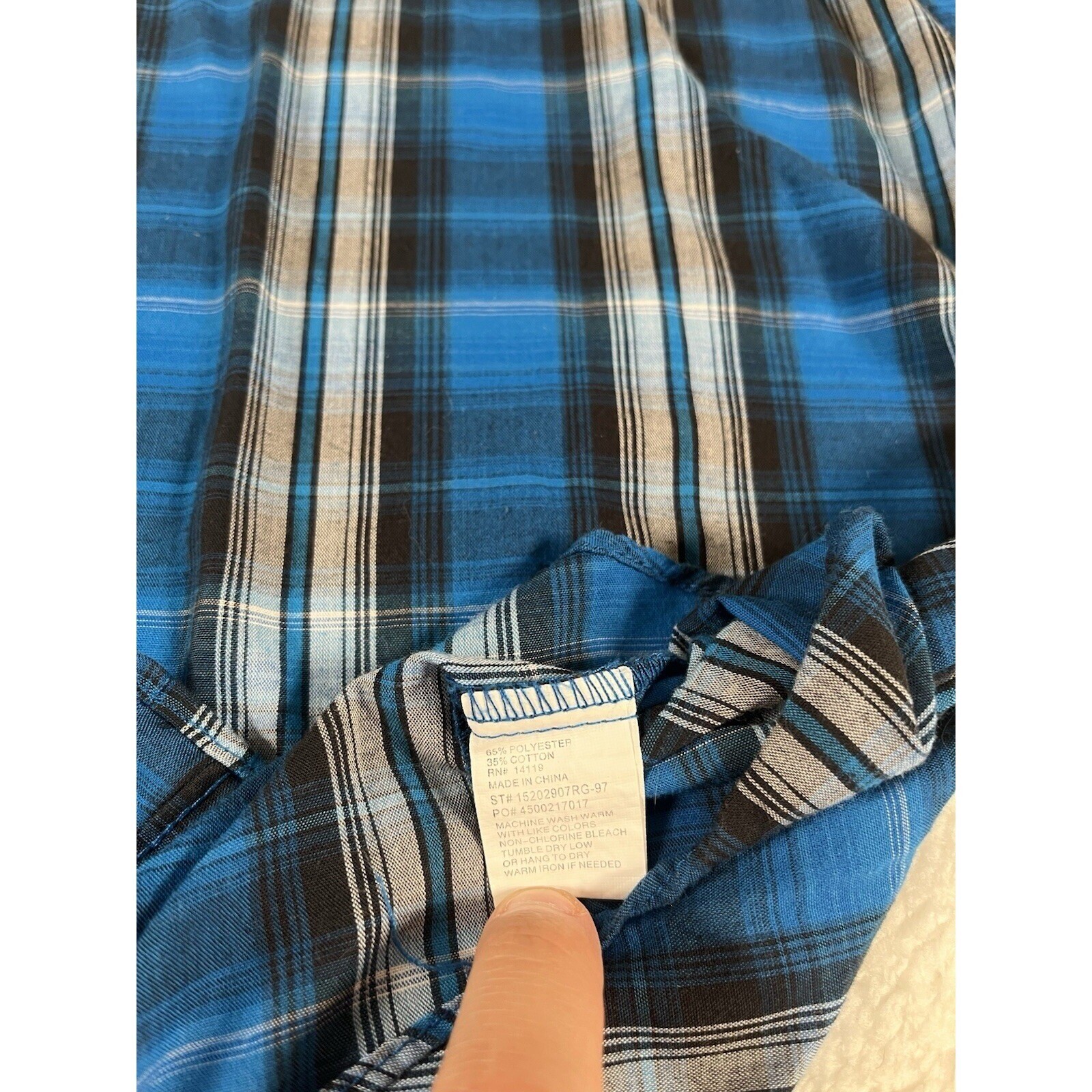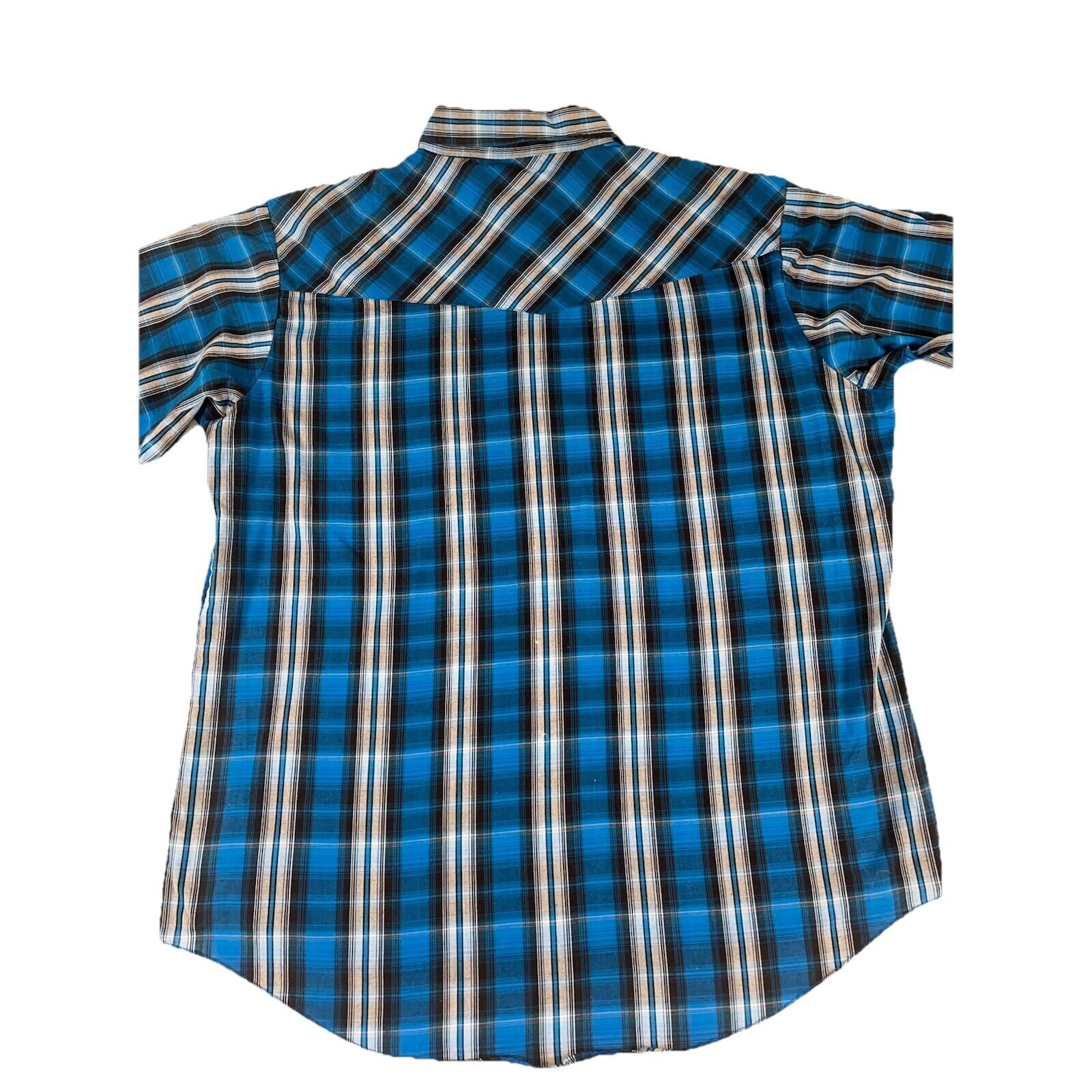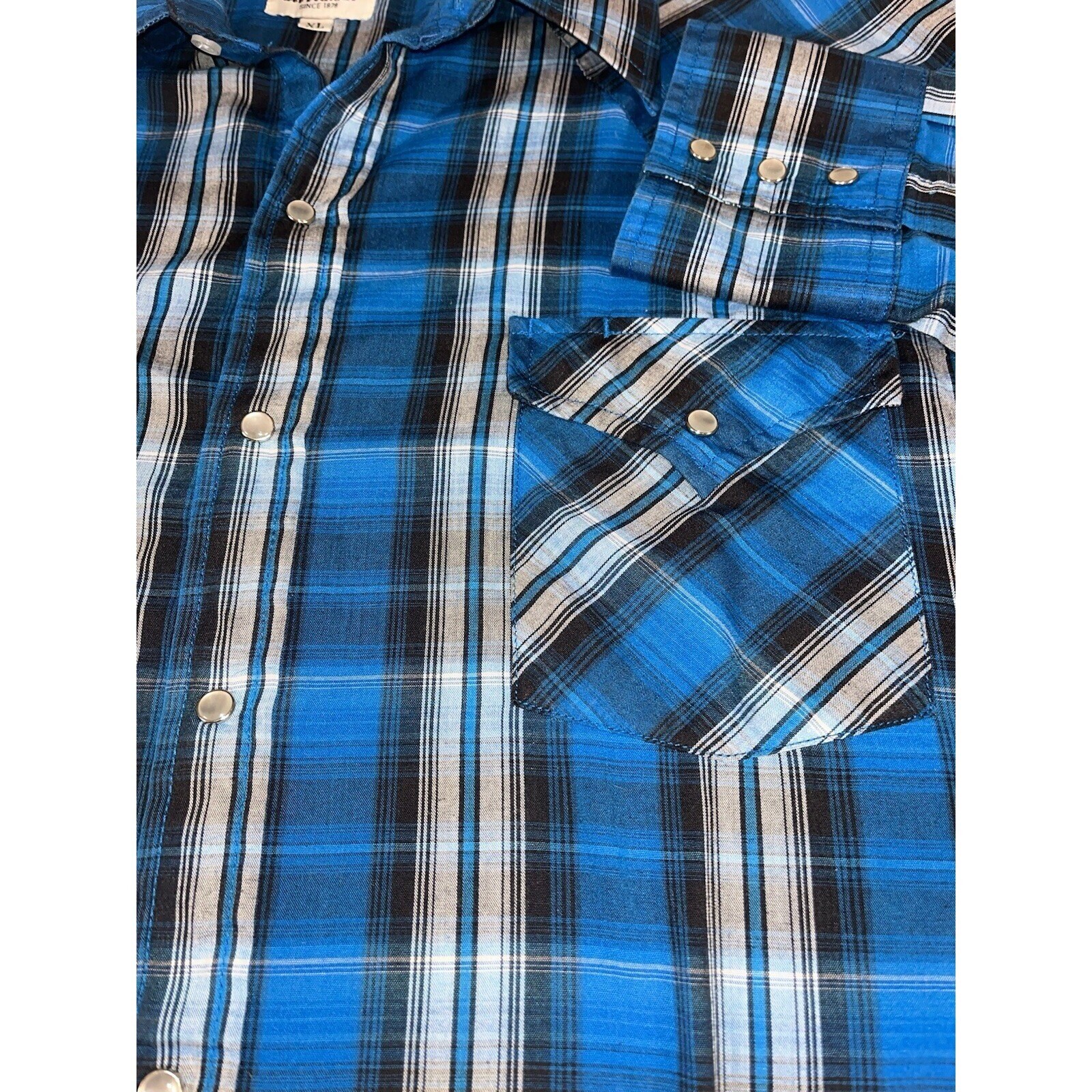 ELY Cattleman Vintage Pearl Snap Blue Plaid Western Long Sleeve Button Size XL