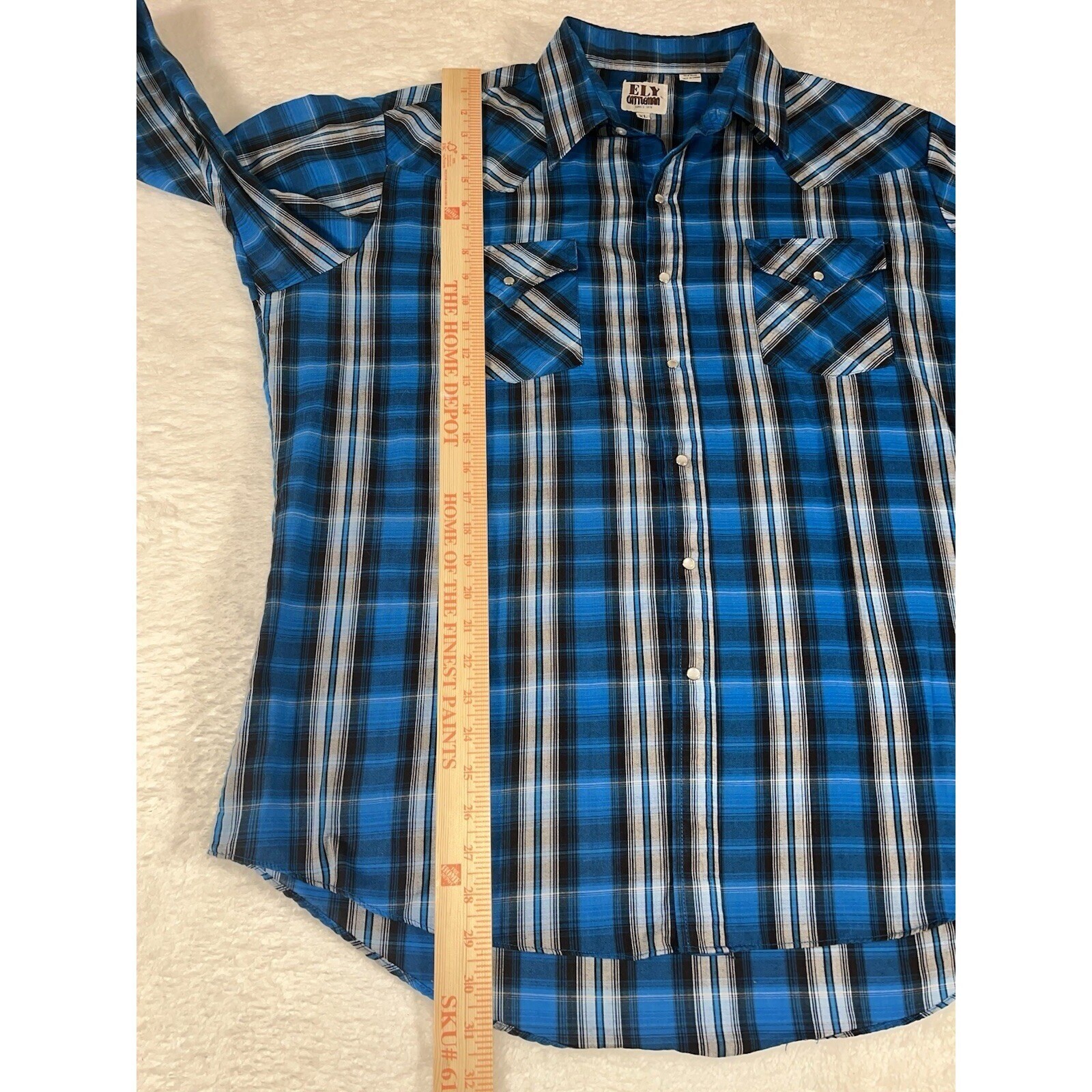 как выглядит ELY Cattleman Vintage Pearl Snap Blue Plaid Western Long Sleeve Button Size XL фото