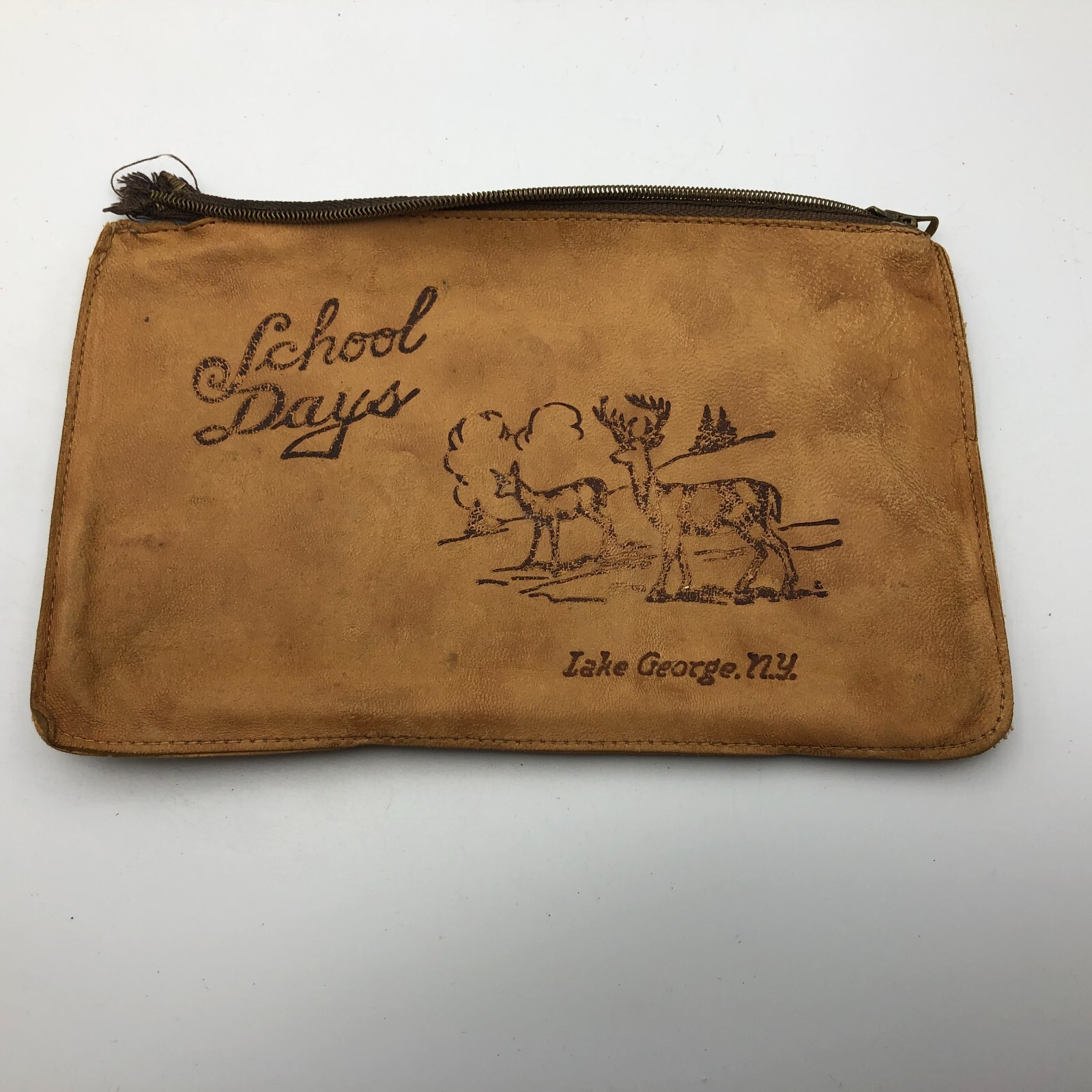 • LAKE GEORGE NY Pencil Pouch School Days w/Damage AS IS Scarce Vintage Antique