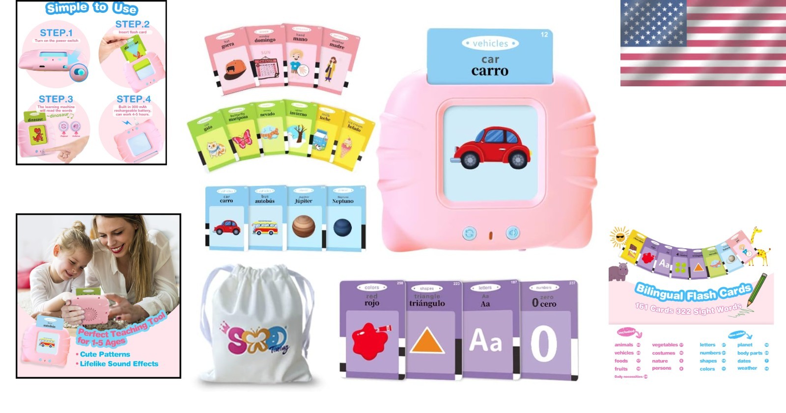 Interactive Talking Flash Cards for Kids Ages 1-8 - Fun Bilingual Learning
