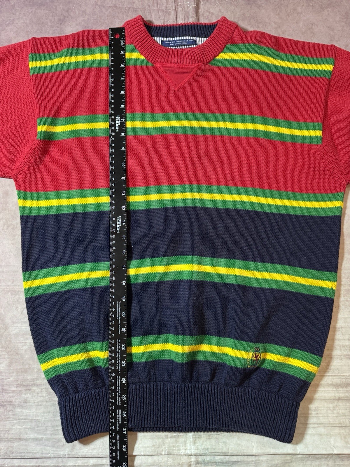 как выглядит VTG Tommy Hilfiger Colorblock Multicolor Striped Knit Sweater Medium Preppy 90s фото