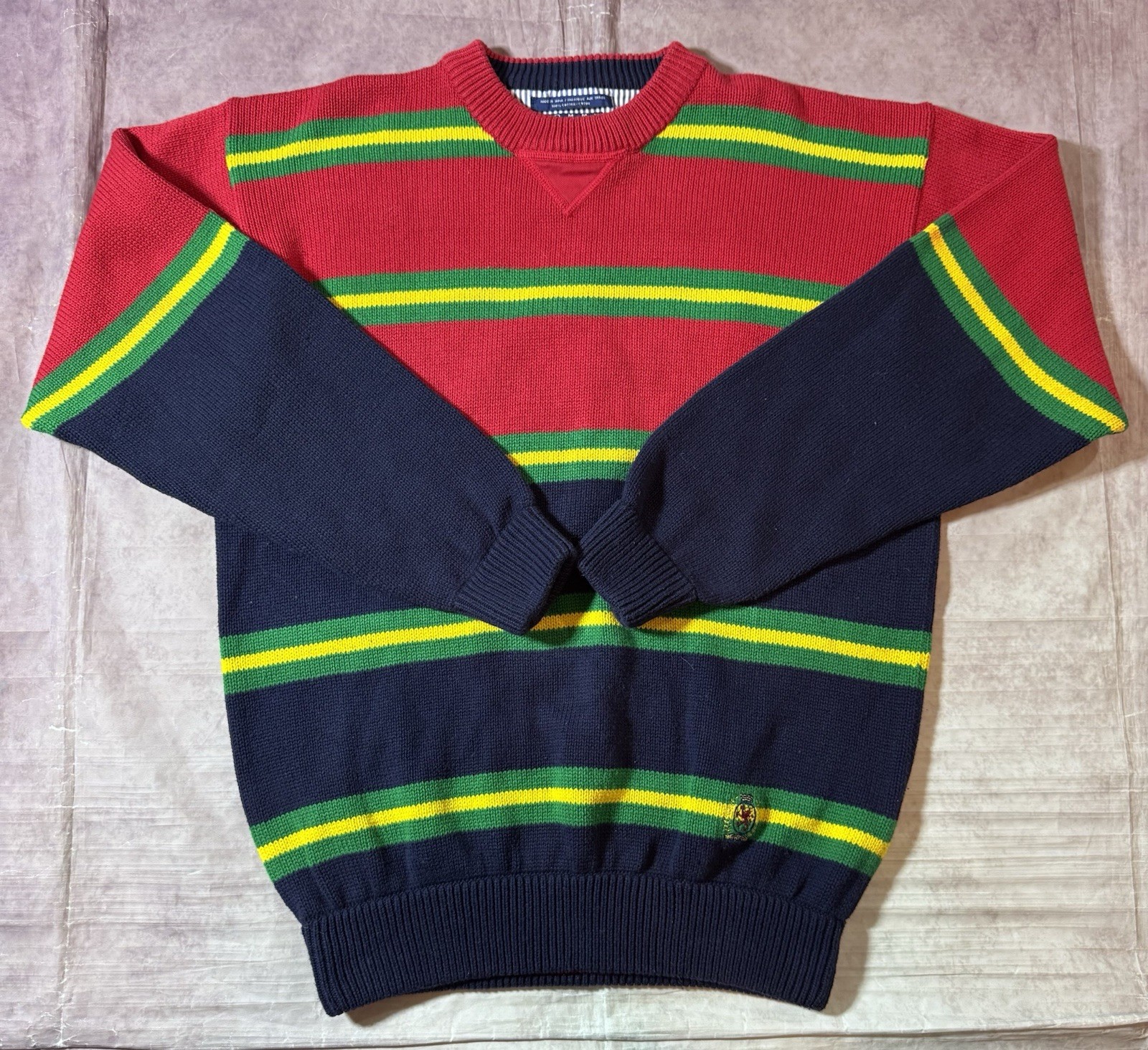 VTG Tommy Hilfiger Colorblock Multicolor Striped Knit Sweater Medium Preppy 90s