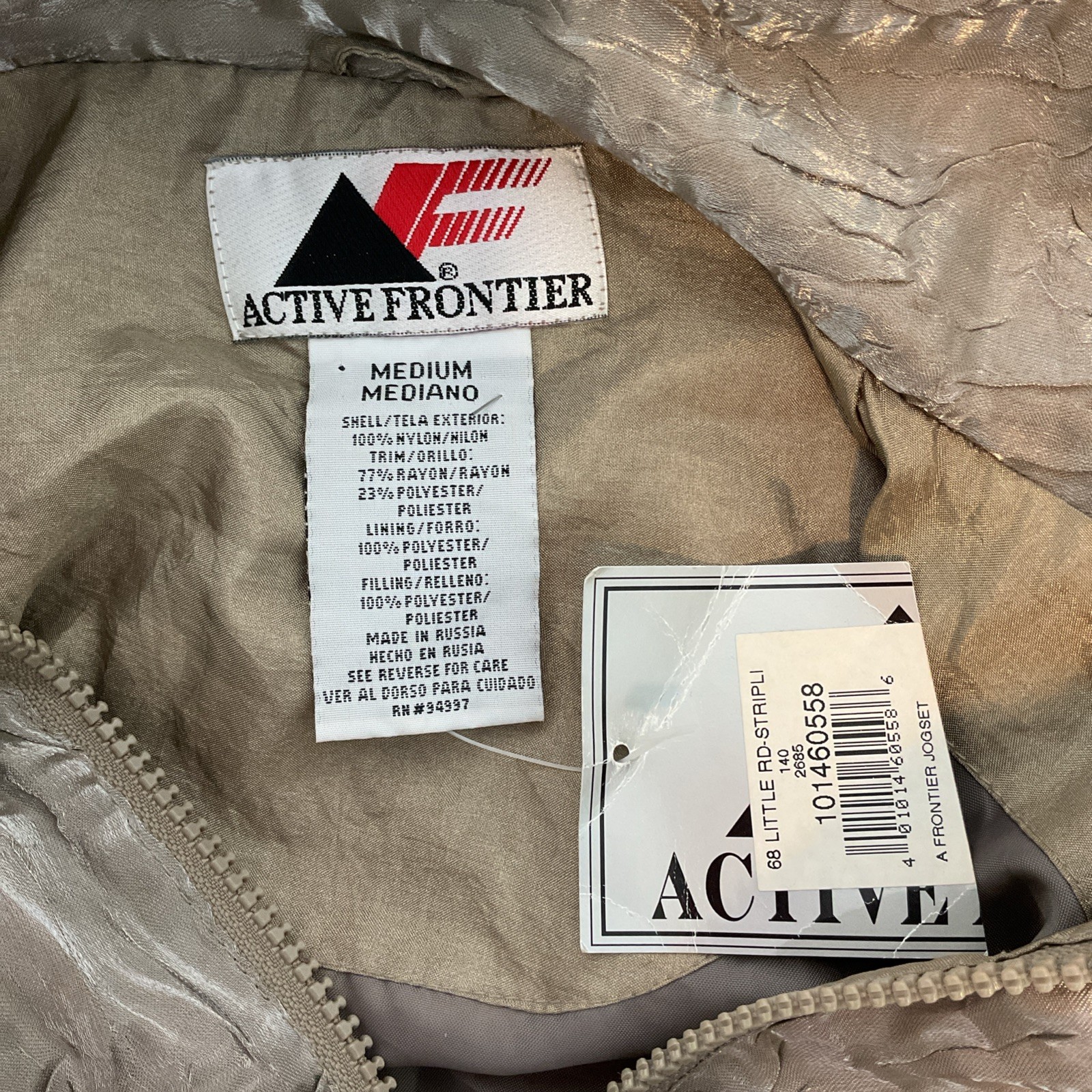 VTG 80s Active Frontier Sport Tracksuit M/L Gold Metallic Jogger Windbreaker Set