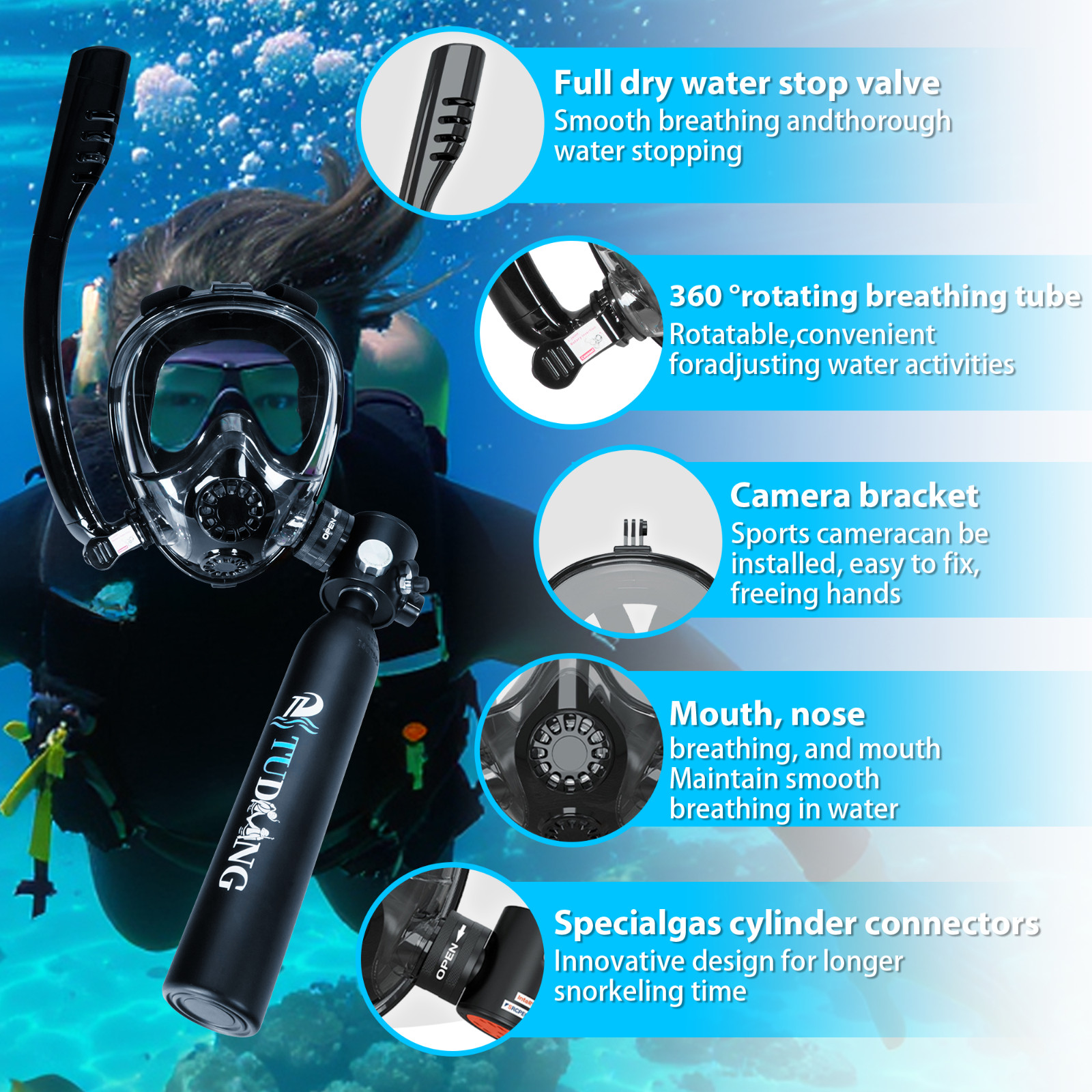 TUDIVING-0.5L Mini Scuba Tank with Snorkel Mask,Lung Tank with Pump,Pony Bottle