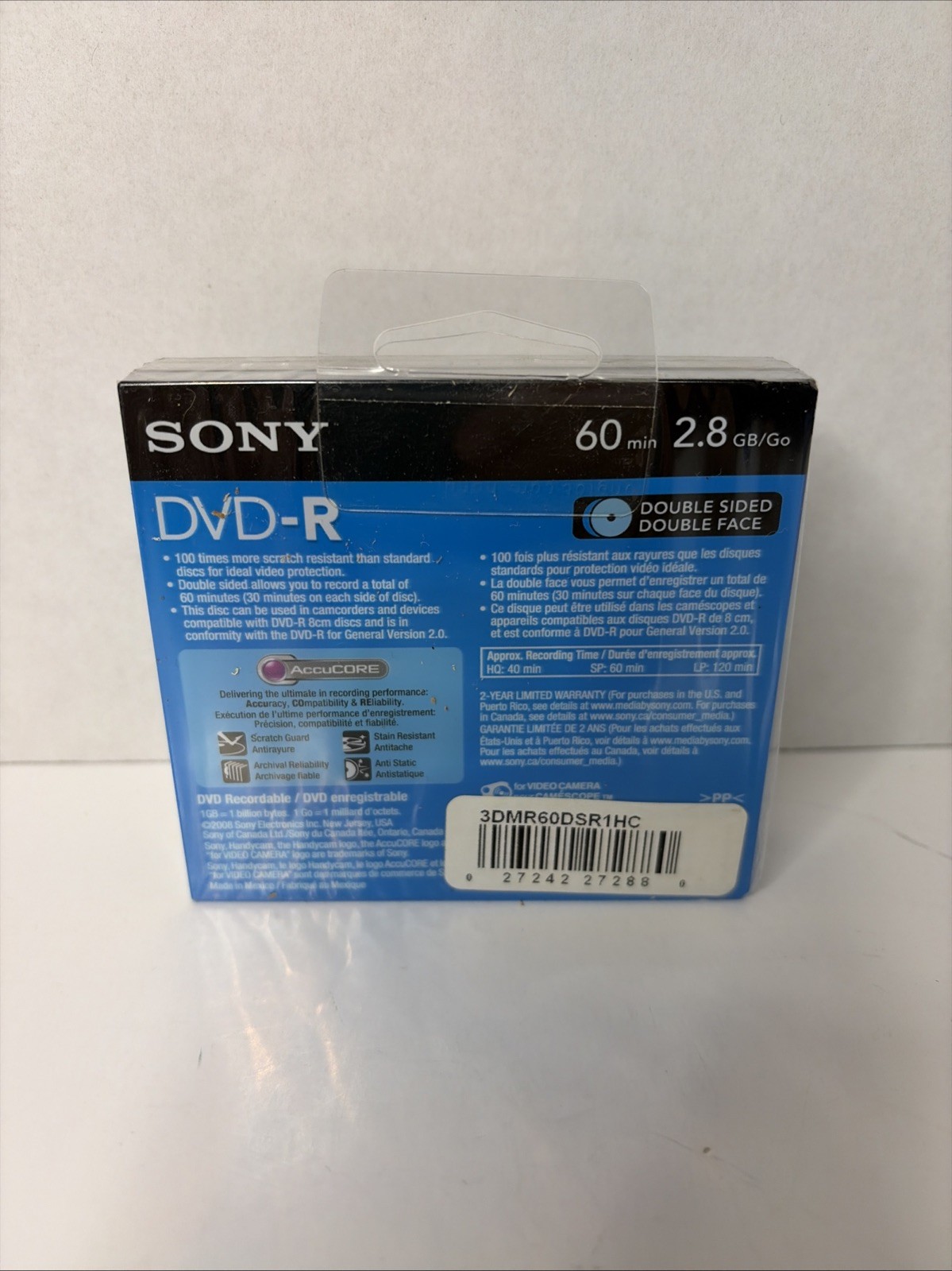 Sony Handycam Dvd-R 3 Pack 60min 2.8GB Double Sided Double Faced Discs SEALED