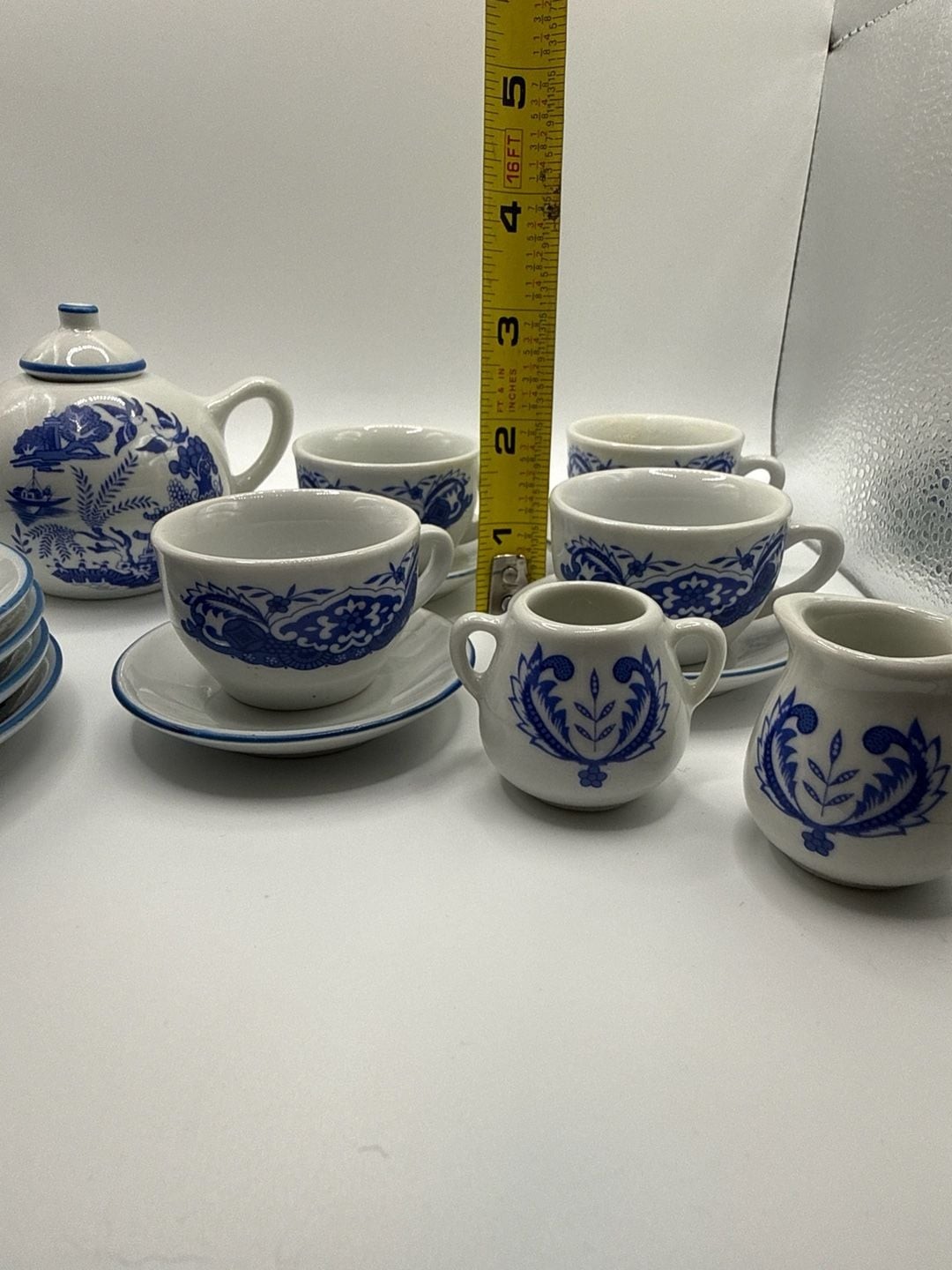 как выглядит Vintage Miniature Blue Willow Ceramic Childs Tea Set, 16 Pieces фото