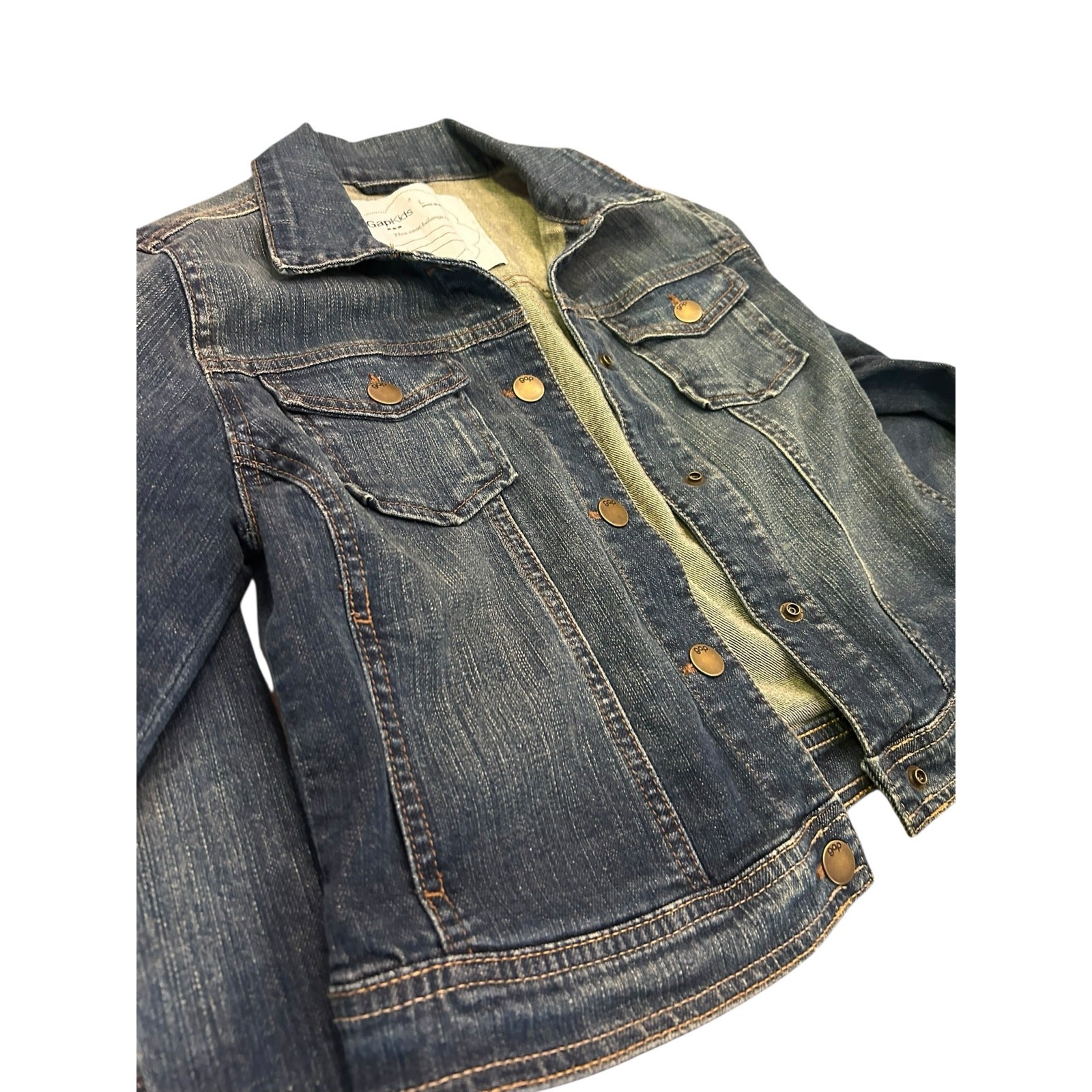 как выглядит Gap Kids Girls L Denim Jacket  Medium/Dark Wash, Classic Button Front фото