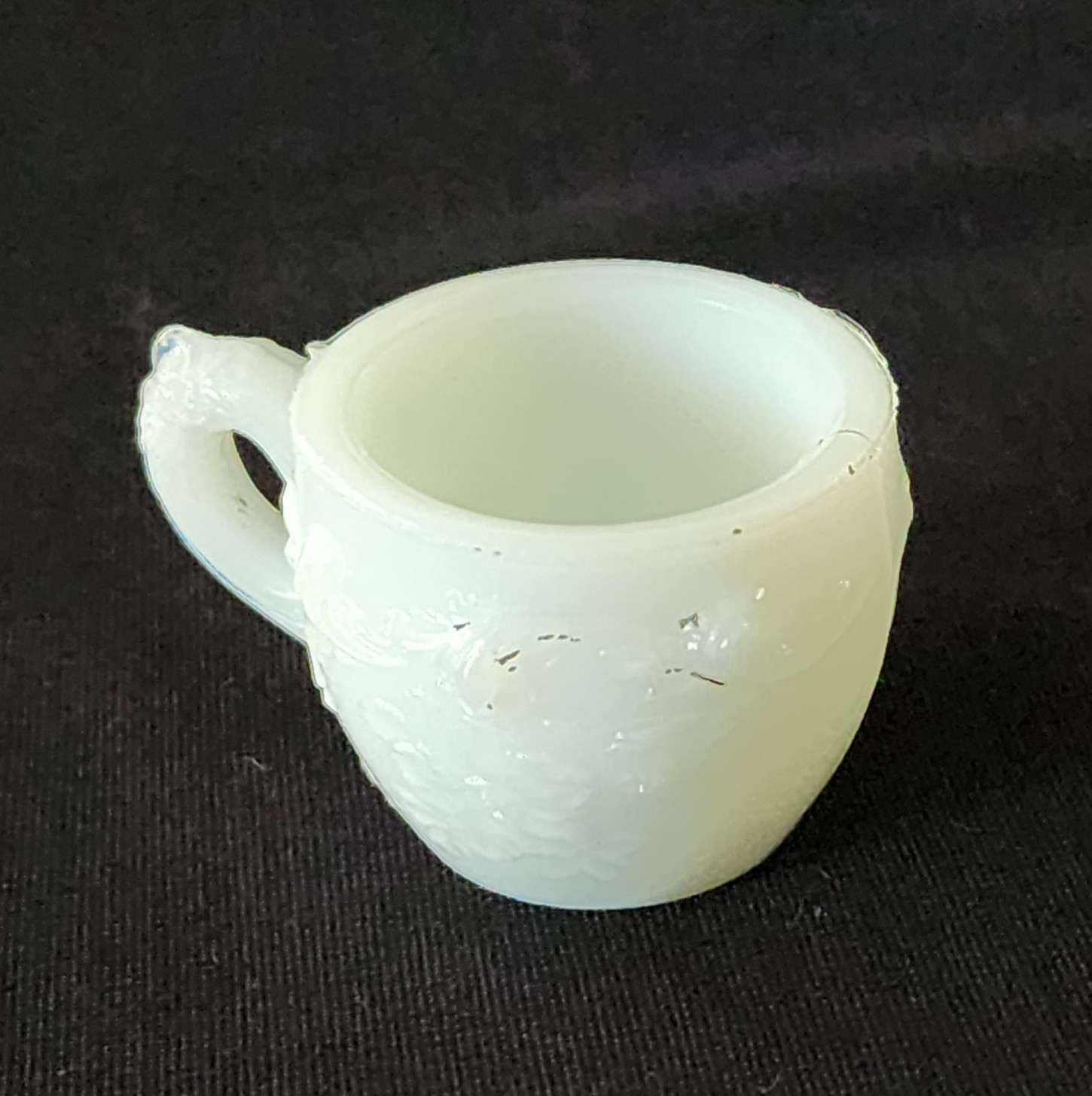 Antique Victorian Early 1900s Milk Glass Toy Cup Scroll Wild Rose Cup