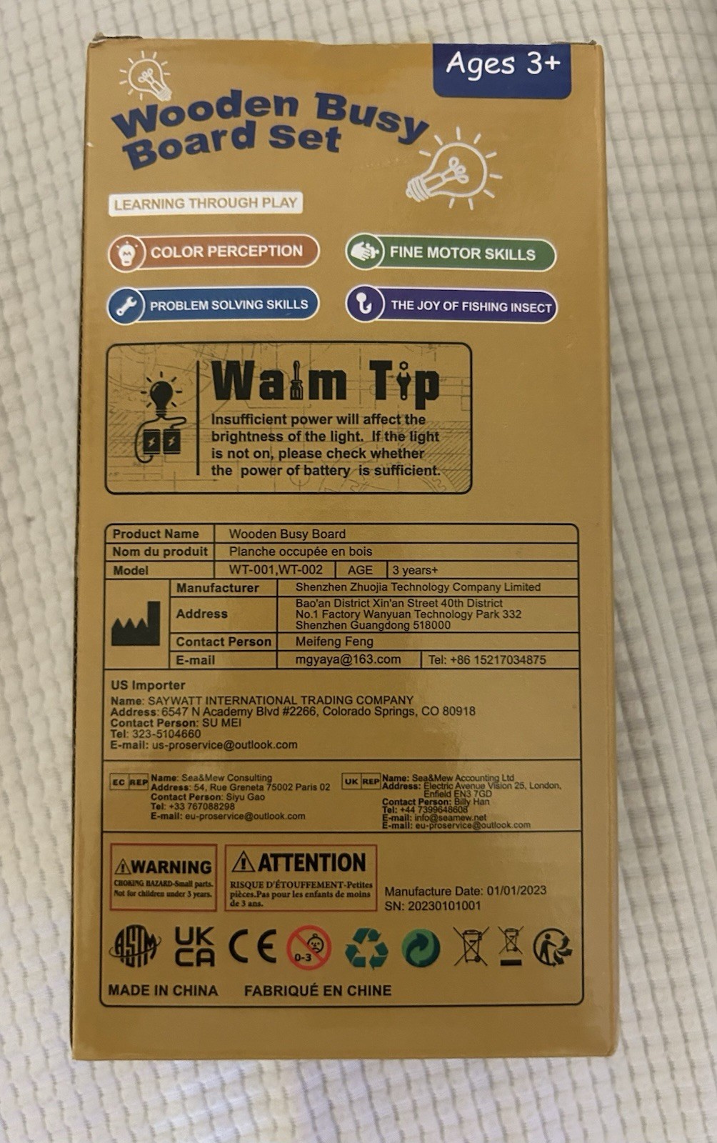 Montessori Wooden Busy Board Toy for 3 Years Sensory Board, New