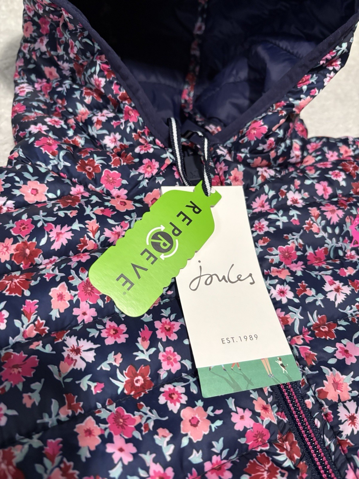 New Joules Girls Packable Puffer Jacket 9 Years Old - Blue Floral Full Zip