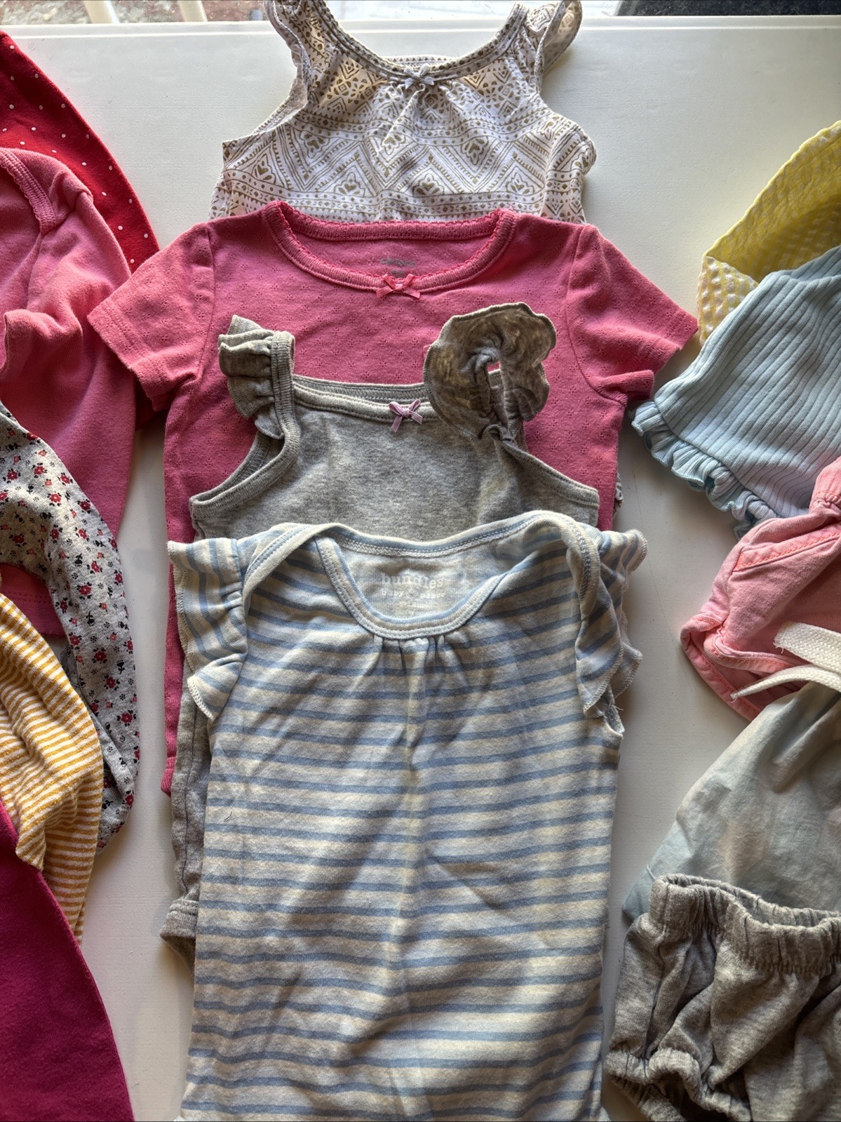 Lot of 19 Baby Girl 6-12 Months Clothes-Pants-rompers Tops Shorts Name Brands