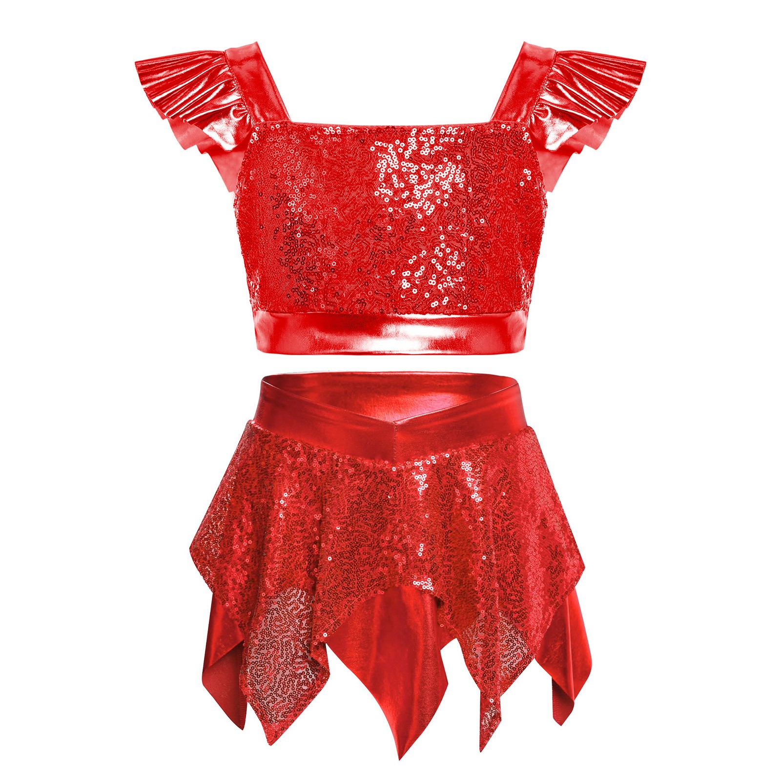 Kids Girls Dancewear Sparkling Dress Samba Costume Tango Crop Top Party Skirt