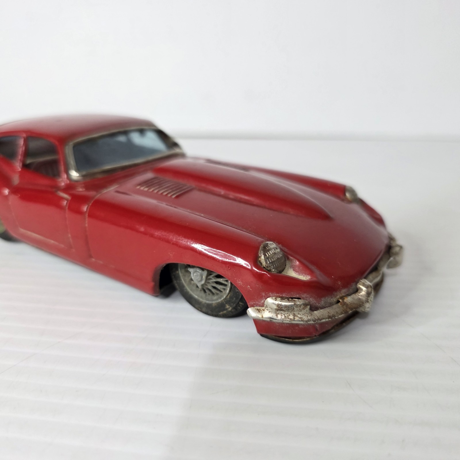 Vintage Bandai Made In Japan Tin Litho Friction Jaguar XK-E Toy Car Red