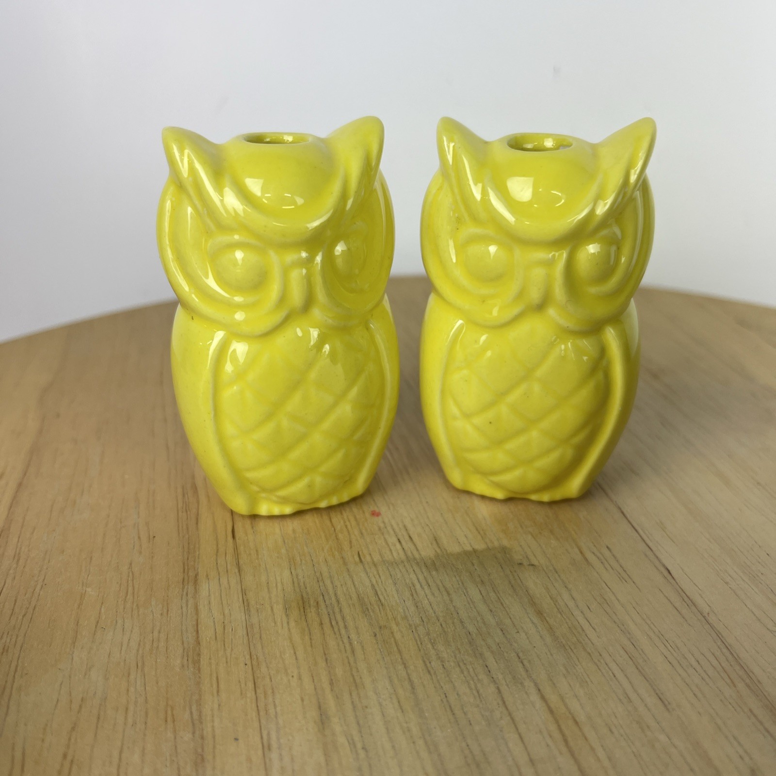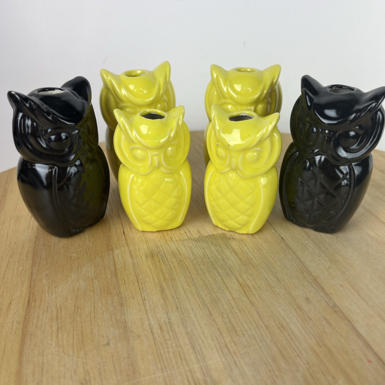 Vintage Lot Of 6 Ceramic Owl Macrame Beads Yellow And Black Glazed 2.75 2.25