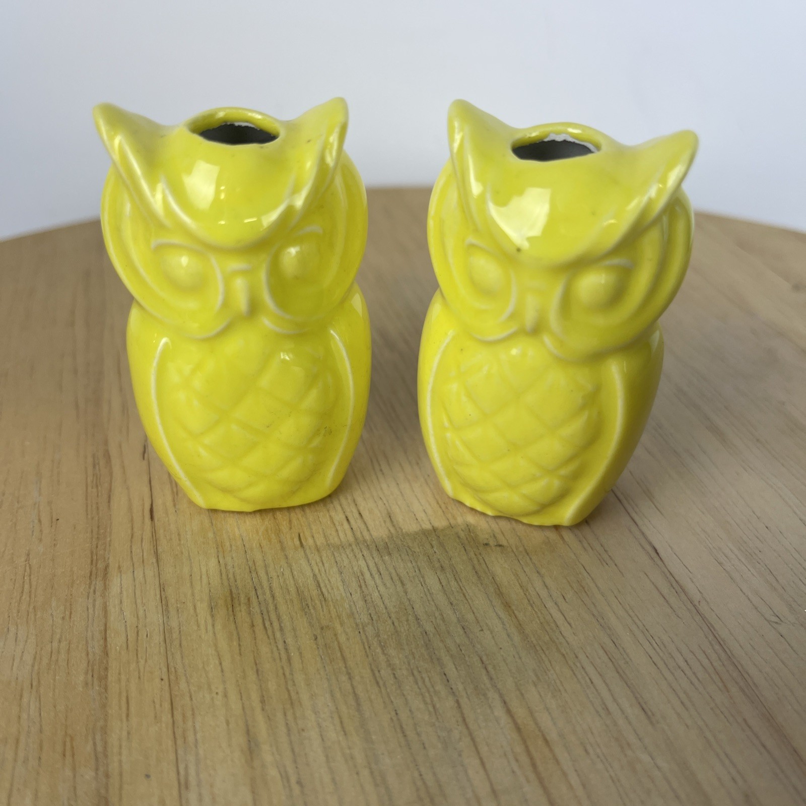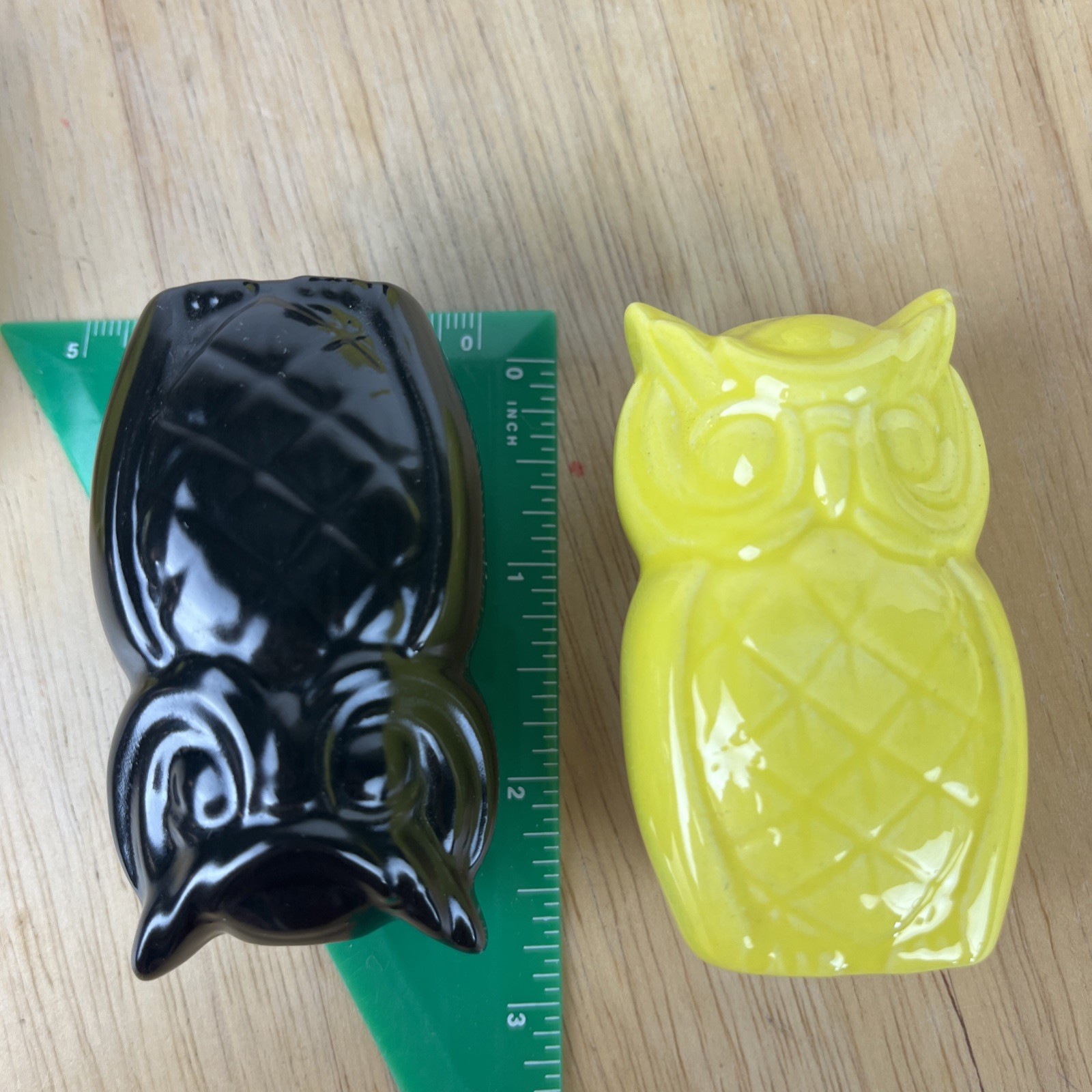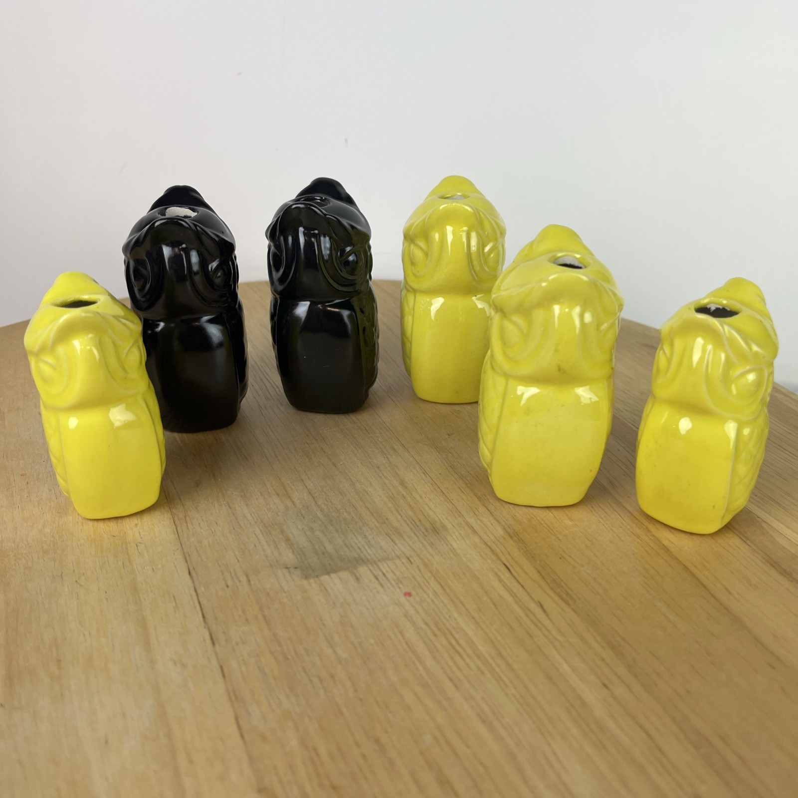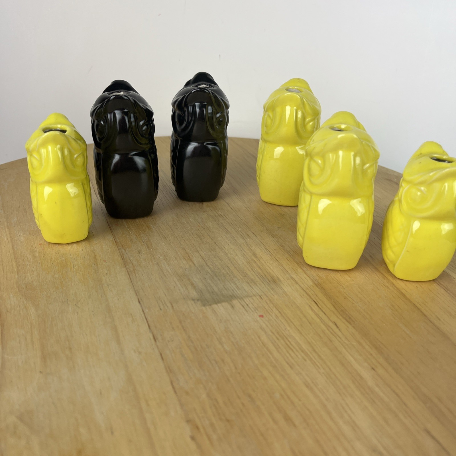 как выглядит Vintage Lot Of 6 Ceramic Owl Macrame Beads Yellow And Black Glazed 2.75" 2.25" фото