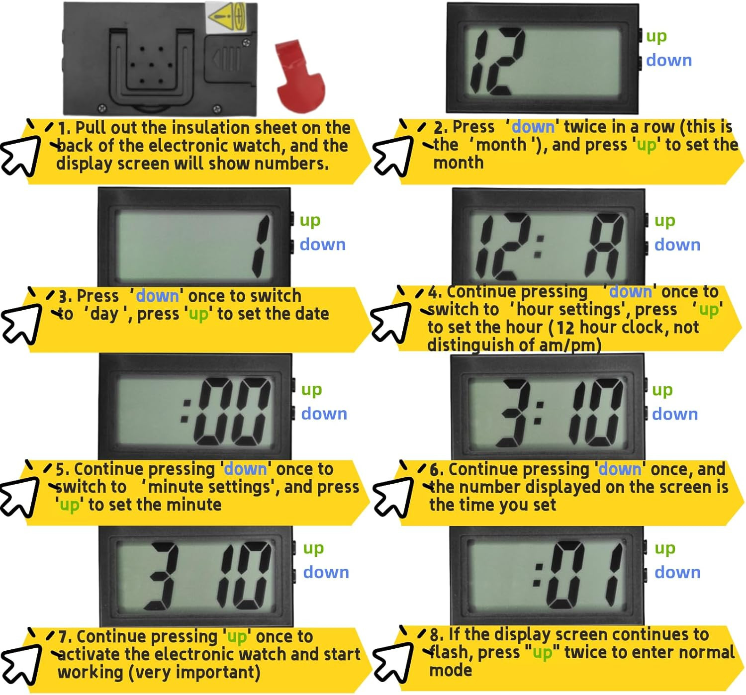 Car Dashboard Digital Clock - with Jumbo LCD Time Day Display - Mini Automotiv